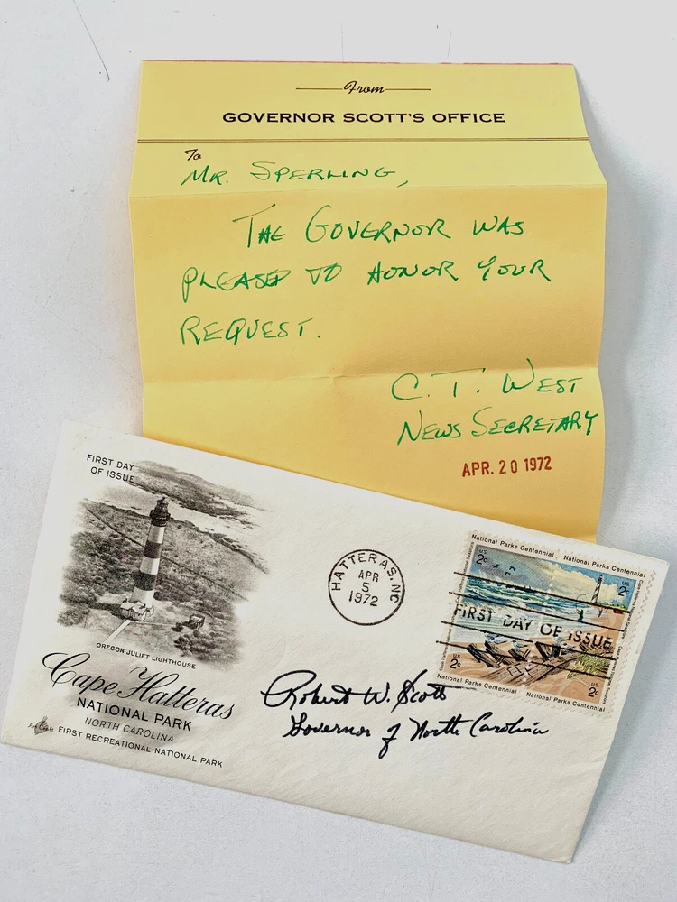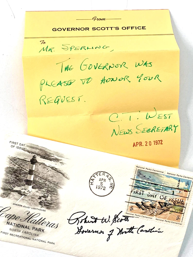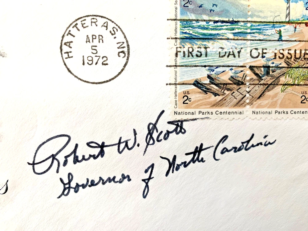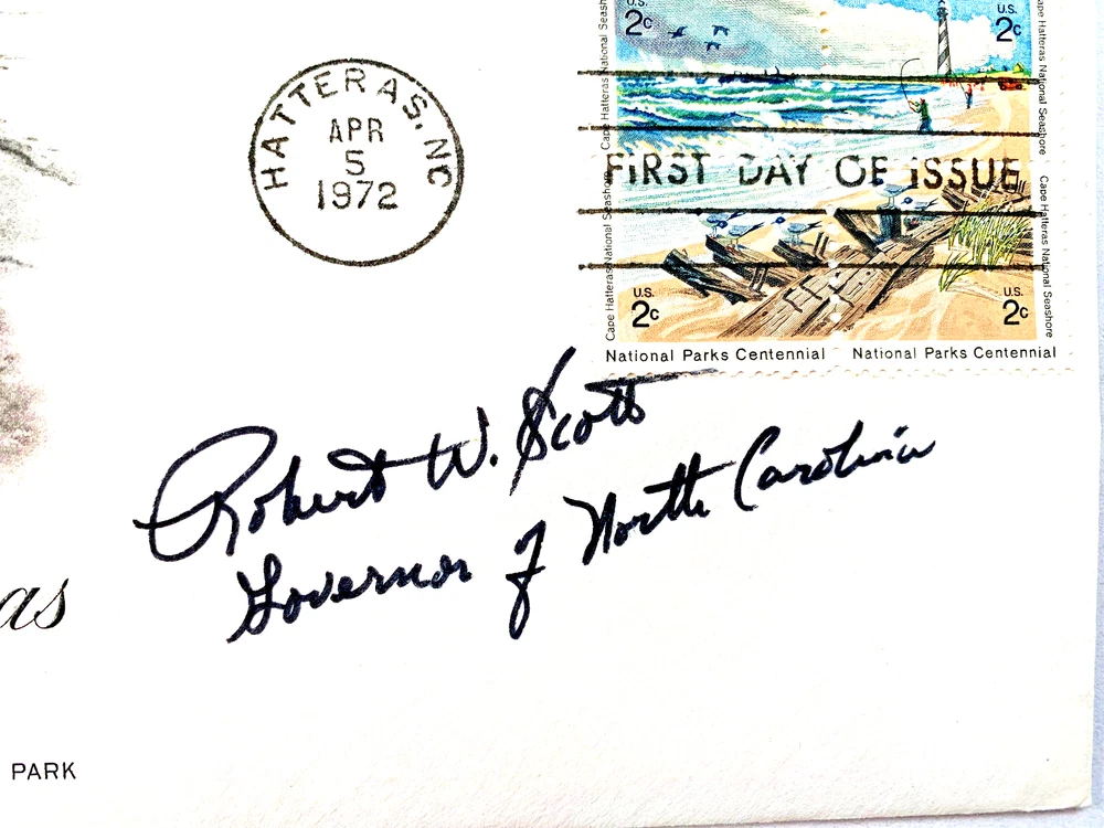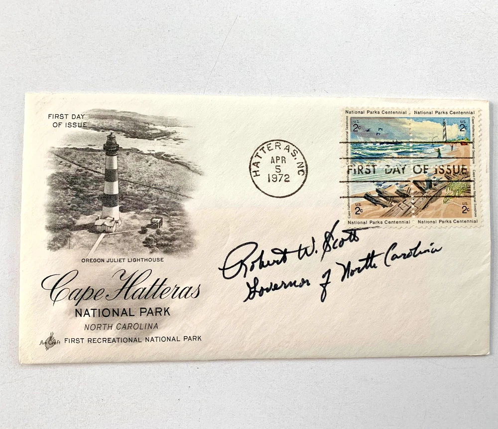 1972 First Day Cover with signature from the Governor of North Carolina, Robert W. Scott. First Day Cover by Art Craft. See photos for condition. If you have any questions or want to see more photos, please message me. This is from my dad's stamp collection. Stamps were more than his hobby, stamp collecting was his passion. If you bought stamps from me previously, thank you! And I hope you find more stamps for your collection. Stamps are not my specialty, however I will do my absolute best to answer any questions. These stamps were in his upstairs home office. The last photo shows my dad's collection of signed First Day Covers. This listing is just for one FDC, the last photo is to show there are other signed FDCs. Currently, this collection ranges from Mayor John Lindsay of NY to Governor Ronald Reagan of California. MORE STAMPS from my dad's collection will be posted soon. Items range from plate blocks to First Day Covers to sheets. Every week or so I will try to post more from his stamp collection. This will be carefully packed. See my feedback to read what my eBay customers say. FREE ground shipping within USA.