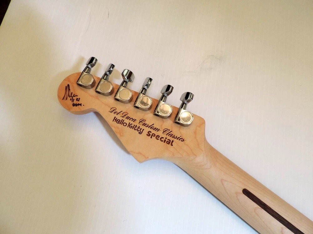 Please note : Guitar ships within 20 Business Days. Custom Fender Stratocaster Hello Kitty Special Customized Strat. Customized by DelDuca Custom Classics , in Sugar Hill , Georgia.. Fender vintage 70's re issue Pickups, 5 way switchin g. Hand Engraved in the Wood, No Stickers or Decals . Hand Engraved Pickguard. Guitar Only As Shown. Please take The time To See All Pictures As they Are Part Of The Description Sold as Is and As Shown. No returns. Paypal. PLEASE NOTE , GUITAR SHIPS WITHIN 20 BUSINESS DAYS Worldwide Shipping.