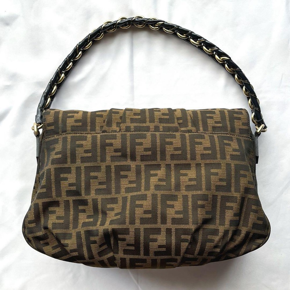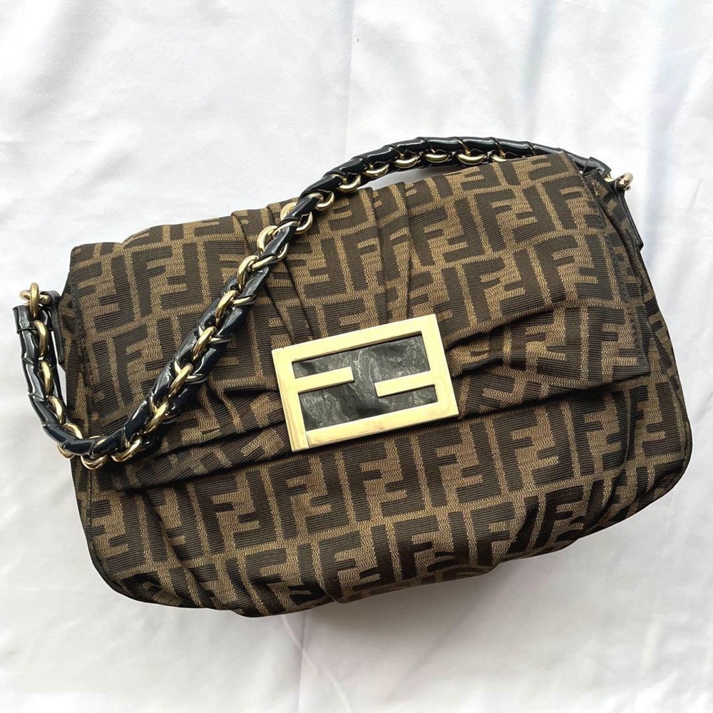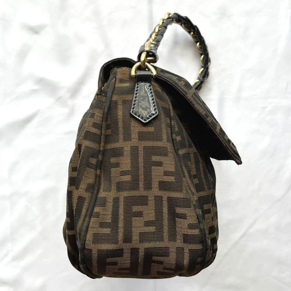 FENDI MIA Zucca Pattern Chain Shoulder Bag Used Excellent+ Japan Authentic Description Brand: Fendi Model: 8BR614-DMP / 109-2258 Color: Brown, Navy (patent leather), Gold-tone hardware Material: Canvas, Patent Leather Size: - Width: 33.5cm / 13.2in - Height: 26cm / 10.2in - Depth: 9cm / 3.5in Condition: Good, some fading on emblem, scratches on magnetic flap and hardware, wear on inner flap canvas All of Items Will be Shipped From Japan. Please check with the image. About the condition Damages such as stains, scuffs, and scratches are listed only if they are noticeable. Please understand that this is a used item, so there may be some inconspicuous scuffs or signs of use even if they are not listed. Please note that there may be unnoticeable scuffs and scratches on the item even if they are not listed. Please check the images for details of the condition. Note: This is a used item. We have tried to describe the condition of the item with detailed pictures and text as much as possible, but please understand that there may be some things that we have overlooked because it is a used item. Please note that measurements are taken by our company, so please understand that there may be some errors. If there is no special description about the accessories, only this item will be included. Colors may look different from the actual item depending on your monitor and shooting environment. Payment Please pay within 7 days of first purchase. ebay payments We can not separate invoice. Please understand. Shipping&Handling ■Speedy Shipping Shipped by DHL, FedEx, or Japan Post with tracking number. *If your location is designated as remote, additional shipping charges may apply. (Some areas such as Australia, Canada, Chile, and remote areas of the U.S.) I will pack it carefully. ■Economy Shipping (Japan Post) Economy Airmail 15-40 days without tracking Additional shipping fees may apply for countries/areas where delivery by Japan Post is not available. Handling Time Please check the categories of Shipping and payments. International Buyers - Please Note: Import duties, taxes, and charges are not included in the item price or shipping cost. These charges are the buyer's responsibility. Please check with your country's customs office to determine what these additional costs will be prior to bidding or buying. If you have any questions about products, shipping, etc., please do not hesitate to contact us by message. Thank you for your understanding.