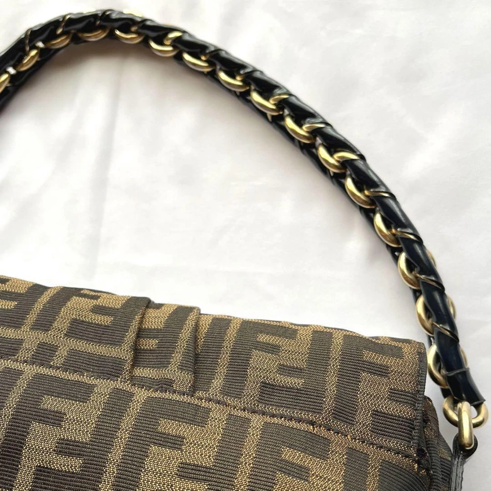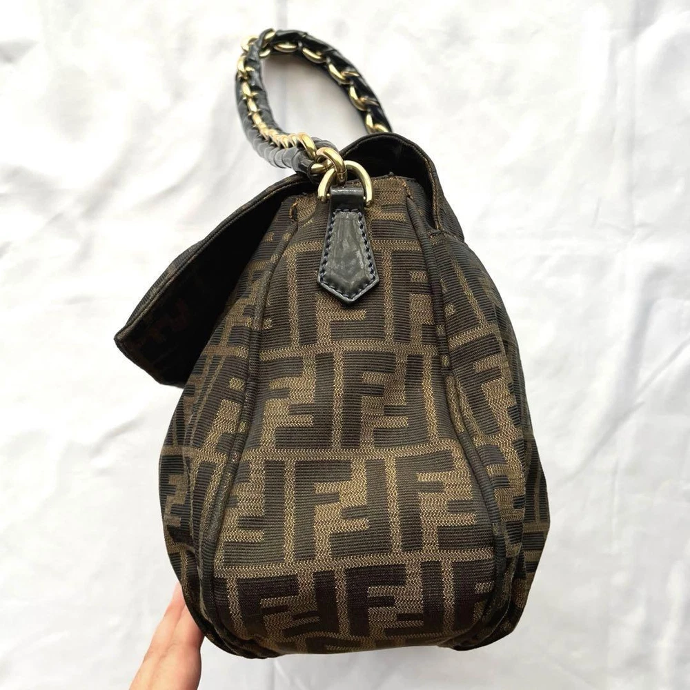 Absolutely love this Fendi bag! The Zucca pattern is timeless, and the mix of canvas and patent leather gives it a chic, sophisticated look. Despite being pre-owned, it’s in fantastic shape—just minor wear that adds character. The gold-tone hardware and chain strap elevate the design, making it perfect for both casual and dressy outfits. The size is practical, fitting all my essentials without being bulky. Shipping from Japan was smooth, and the authenticity is spot-on. A stylish, high-quality piece that feels like a steal for the condition!