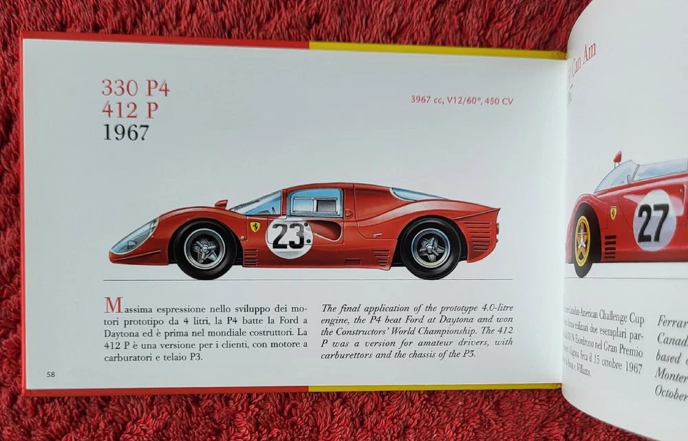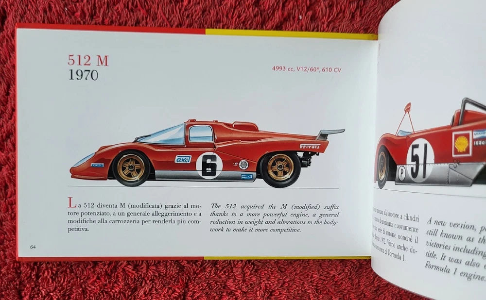 FERRARI Ferrari Sport e Sport-Prototipo. An extremely rare 2003 Hardback. Small-format (7x5") hardback book with one-page drawing and description of each competition Ferrari raced from 1947 through 1994. In dual language of Italian and English. BRAND NEW (NOS) and 99% fine. Expertly packed then securely delivered by Royal Mail Signed For or Ebay Global Shipping Programme Approved.