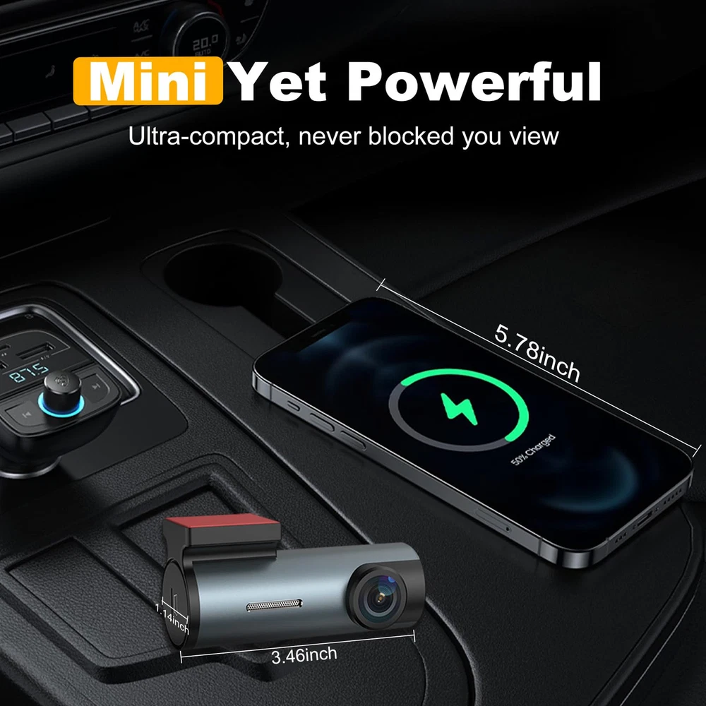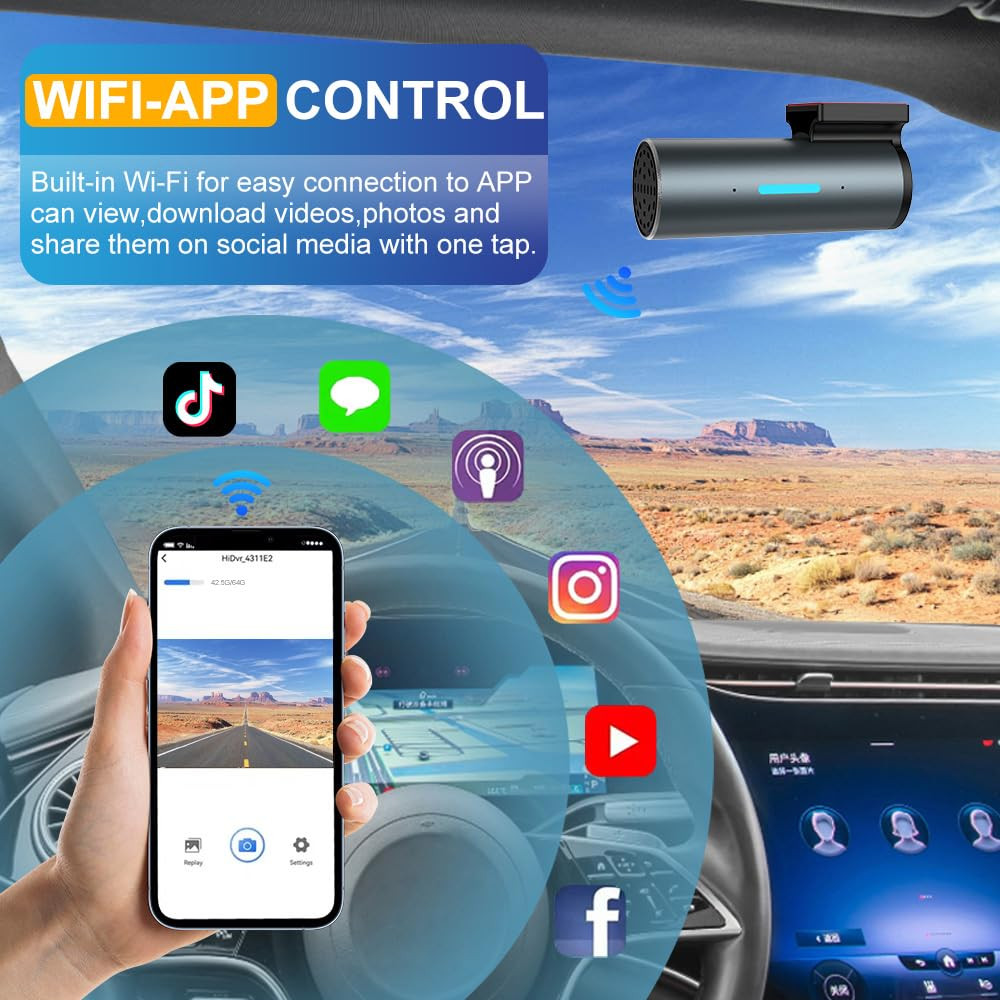 ⚠️ C30 dashcams No recharge batteries function. ⚠️ The C30 front dashcan is a wired car dash camera ⚠️Please be aware that connection to the app may not be possible when using wireless CarPlay or Android Auto. 【FHD 1080P Dash Cam】dashcams for cars captures crystal-clear footage in Full HD 1080P, ensuring that every detail on the road is recorded with clarity. Whether it's daytime or nighttime, you can rely on this dash cam to provide clear and sharp video evidence in case of any incidents. 【Built-in WiFi & APP Control】Front dash camera with the built-in Wi-Fi feature and corresponding mobile app, WIFI dash cam you can easily connect your smartphone to the dash camera. This allows you to view, download, and share videos and photos directly from your phone, eliminating the need for memory card readers. 【Enhanced Night Vision and Wide Dynamic Range】 Thanks to advanced night vision technology and WDR, this dash cam excels at recording in low light conditions. Whether you're driving at dusk or during heavy rain, the dash cam adjusts the exposure to ensure clear and detailed video footage, enhancing your safety and visibility on the road. 【Seamless Loop Recording】Auto overwrite the oldest footages to save the current files when the card is full. 【Include 64G SD Card&U+A cigar lighter】64GB SD card is pre-installed in the dash camera for cars. Support Max 128G memory.U+A Dual interface quick charge cigarette lighter for cars.Can support the dashboard camera and mobile phone power supply at the same time. 【MINI Design and Easy Installation】Its compact size (3.3x1.1x1.4inch)and sleek design ensure that it doesn't obstruct your view while driving. Installation is quick and hassle-free, with the included mounting accessories. Simply attach it to your windshield, connect the power cable, and you're ready to go. 【360° Rotatable Bracket】 Rotates 360 degrees for easy adjustment to theideal recording angle.You can adjust the Angle to record inside or outside the car.The full field of view can be recorded better, reducing blind spots,capturing more details. 【Safe Design】With heat-resistance chipset and aluminum alloy shell, mini car dash cam has longer lifespan and stable performance. Survive extreme weather conditions from -40°F to 185°F. With high heat resistance adhesive pad, the car dash camera can work fine and stay attached to windshield even on hot sun, away from risks of high temperature.