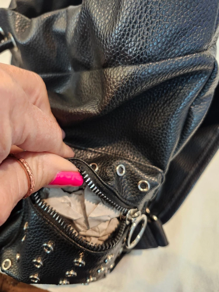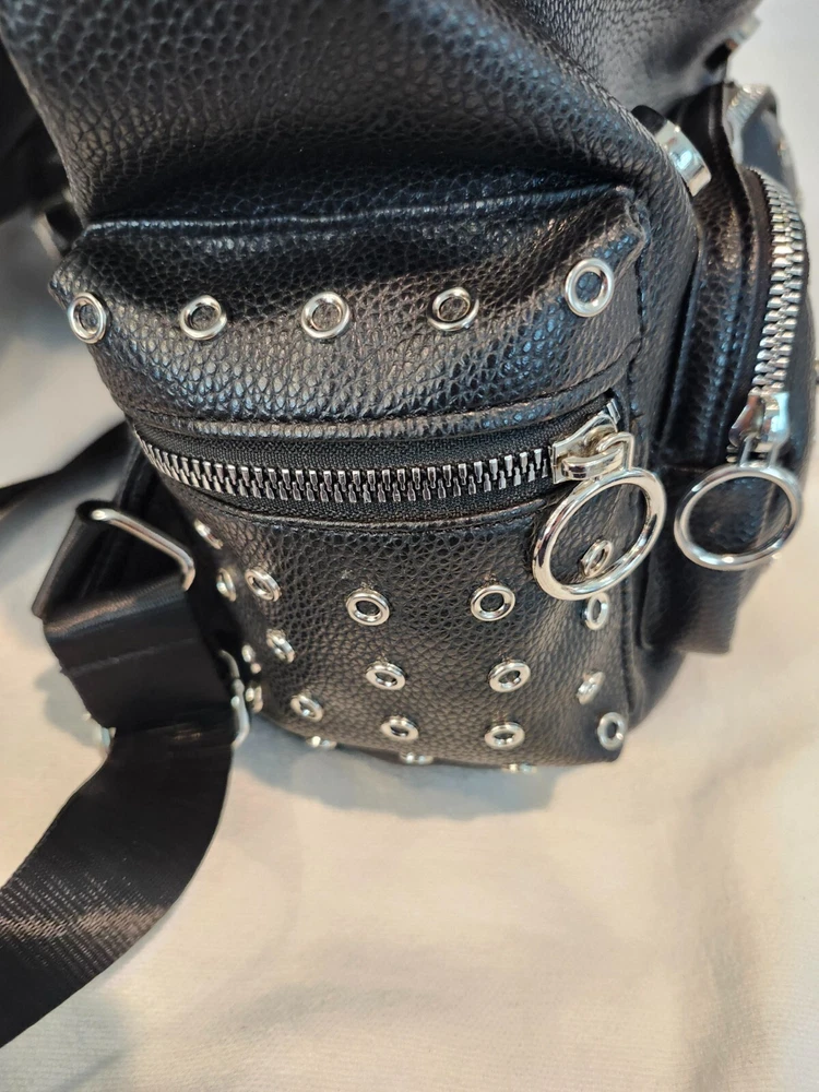 The FIFTH & LUXE Backpack in black is a stylish and practical choice for kids of all genders. Made of faux leather, this medium-sized backpack features a unique design with lots of rings adding a touch of flair. Perfect for everyday use, this backpack is both functional and fashionable, making it a versatile accessory for any outfit.