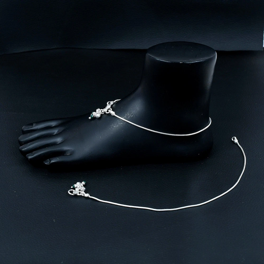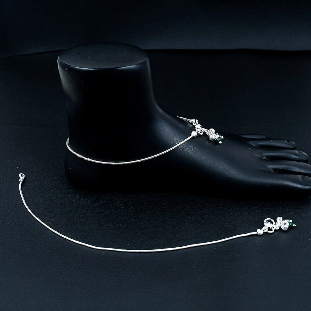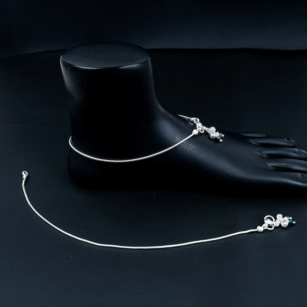 FINE SILVER Indian Payal 925 pure Silver Handmade Anklet Pair FREESHIP