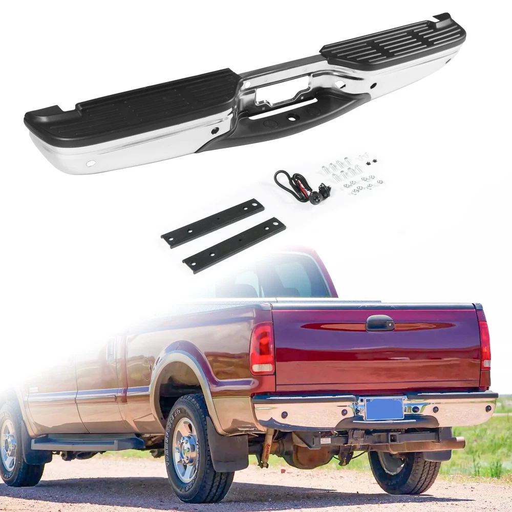 eBay DESCRIPTION PAYMENT SHIPPING RETURN POLICY Shop Category Hot Item Step Bumper Assembly For 2008-2016 Ford F-250 Super Duty Fleetside Black Steel USD 164.52 New Chrome Rear Bumper For 2007-2013 Chevy Silverado GMC Sierra 1500 Sensor Hole USD 267.99 Picture FIT FOR 1999-2007 FORD F-250 CHROME REAR STEP BUMPER W/ PARK SENSOR HOLES Item Specifics Brand Unbranded Placement on Vehicle Rear Color Chrome Material Carbon Steel Finish Chrome Features Simple Installation Process, Item Width 10.04 Item Height 10.83 Manufacturer Warranty 5 Years Item Length 75.39 Notice For Models with Park Assist Holes Suitable For 1999-2007 Ford F250 F350 Super Duty Features: Simple Installation Process,Practical and Ornamental Coexis,Fits Perfectly with the Vehicle,Protect the Vehicle and Reduce Damage Material: Carbon Steel Manufacturer Part Number: Bumper, Rear Bumper, Rear Steel Bumper Assembly, 1997 1998 1999 2000 2001 2002 2003 Notice: For Models with Park Assist Holes You may also like NEW Complete Chrome USD 166.46 Step Bumper Assembly USD 164.52 New Chrome Steel USD 174.15 New Chrome Rear USD 267.99 Payment Payments are accepted through Paypal,credit card and other payments which are allowed o n ebay. Shipping If you have not received your item after estimated delivered days, please do not hurry to open case to us. We would recheck the shipping status for you and decide refund or something in your request. Returns If you want to retun the item, please note that all returned products must be in their original packaging with all included accessories and send to the return address that we provide. We will give you full refund when we receive the return item and please kindly wait. Contact US If you are not satisfied with the item, please contact us first and kindly wait before leave a negative feedback. We will reply and help you solve the problem when we back to work on Monday to Friday. On Nov 5, 2024 at 07:11:42 PST, seller added the following information: On Dec 18, 2024 at 19:29:58 PST, seller added the following information: