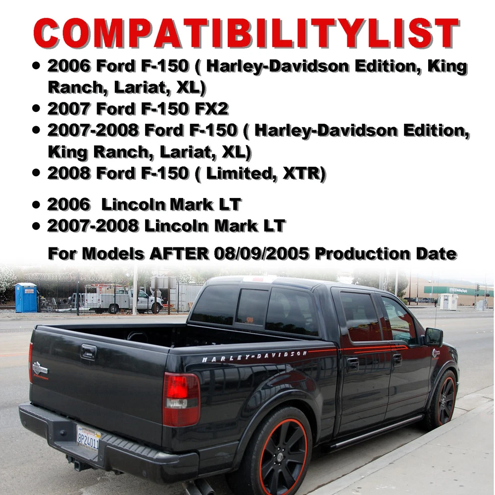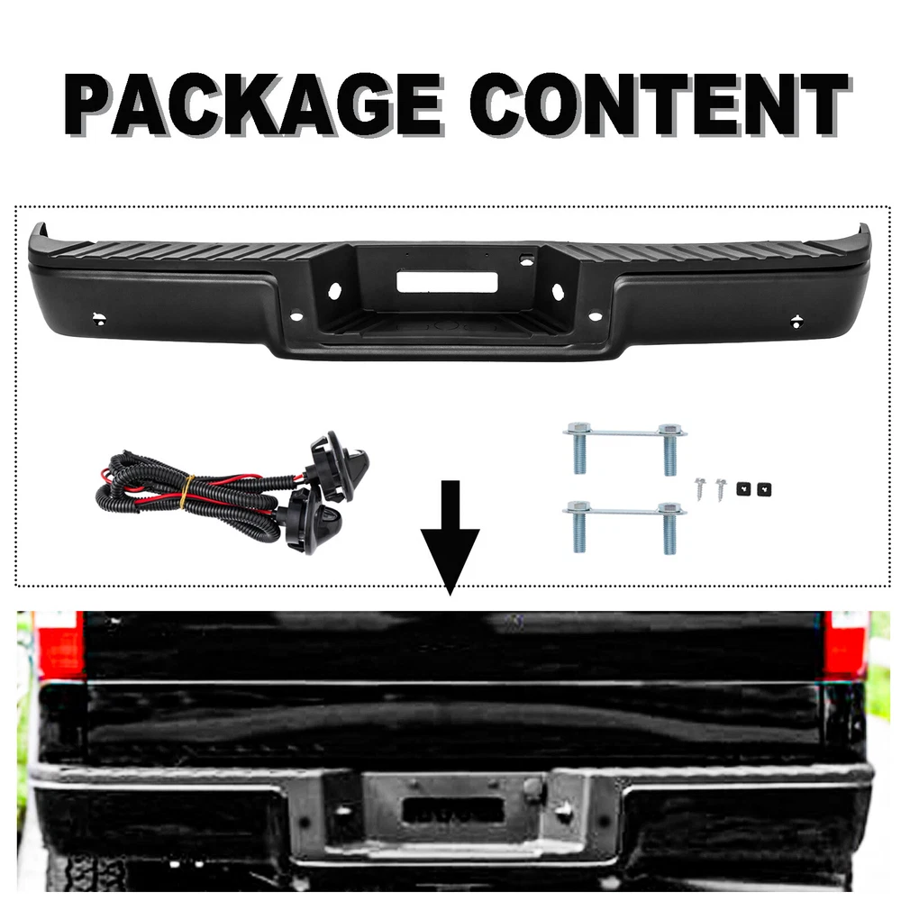 For NEW STYLE Models In 2006 ONLY For Models AFTER 08/09/2005 Production Date For STYLESIDE Models WITH Park Assist Specification Material: Steel Bumper Face Bar+Plastic (PP) Bumper Step Pad Surface Finish: Powder Coated Installation Method: Screw-On Placement on Vehicle: Rear Fitment Type: Direct Replacement Color/finish:Black Replaces partslink number:FO1103138 Fitment: For 2006-2008 Ford F150 F-150 with Parking Sensor Holes Package Includes: 1 Set of Rear Step Bumper On Dec 27, 2024 at 09:05:58 PST, seller added the following information: