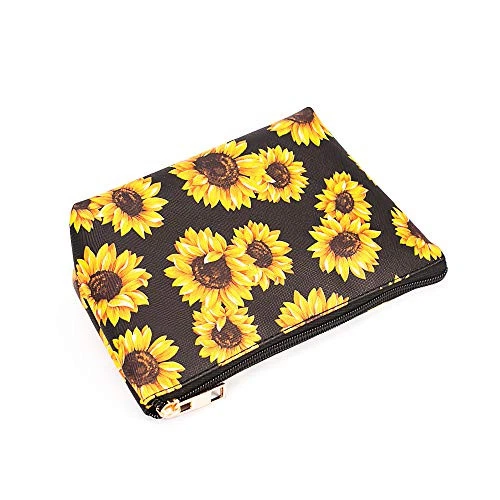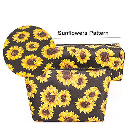 Love these cute and practical makeup bags! The three different sizes are perfect for organizing all my cosmetics, whether for travel or daily use. The waterproof material and sturdy zippers keep everything safe, and the brush holders are a nice touch. Super stylish with the sunflower design—great gift idea too! Fast shipping and reliable seller make it even better. Highly recommend!