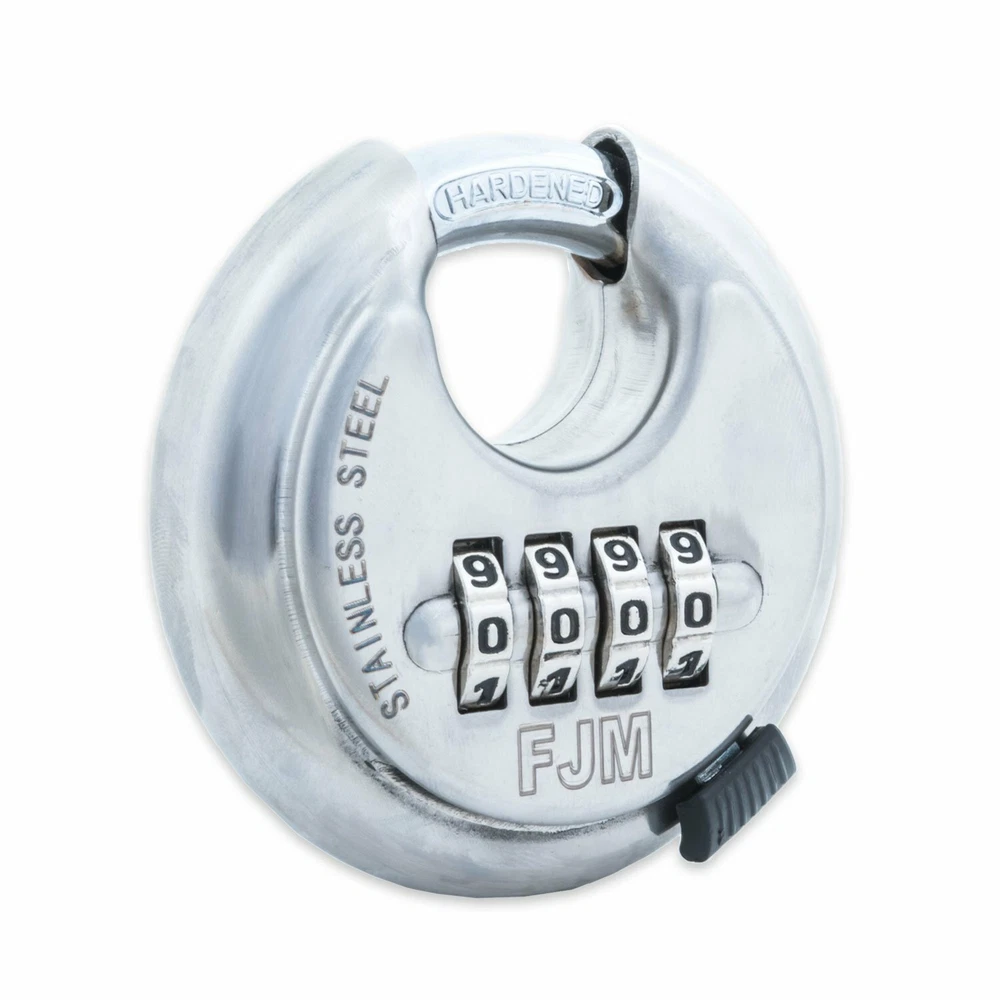 SX-790 4-Dial Combination Disc Padlock, High Security Combination Lock, Indoor, Outdoor Storage Cabinet Padlock, Durable Locker Lock, For Home Improvement, With Shielded Hardened Steel Shackle, Chrome KEYLESS COMBINATION DISC LOCK - FJM Security’s Combination Disc Padlock is the perfect keyless solution for robust padlock protection. Its 4 dials allow for up to 10,000 possible combinations. Create a unique code and increase security by eliminating the likelihood of lost keys and key or pin duplication. HEAVY DUTY, DURABLE CONSTRUCTION - Each combination disc padlock has a protected hidden shackle that’s tough against bolt cutters and similar intrusive tools. Its unique discus shape and design also make it difficult to be tampered with. The SX-790’s body is composed of rust-resistant, chrome-plated stainless steel that withstands varying weathering elements and repeated use. EASY TO USE - This disc padlock’s combination mechanism sets and resets without a hitch. Simply start at its factory default of 0-0-0-0 and slide the lever to open the shackle. Use a pin to turn the chain crew counterclockwise to a horizontal position at the back of the lock. Put in or change your pin and turn the chain screw clockwise back to its vertical position. Your pin is now ready to go! VERSATILE SECURITY APPLICATIONS - The Combination Disc Padlock safeguards storage facilities, gates, bikes, shipping containers, public facilities, and more! Great for either outdoor or indoor use. FJM Security - With over 50 years of experience in producing premium, reliable security products, FJM Security continues to supply resettable combination security devices and other high-quality hardware products in a manner that exceeds our customers' expectations for value, service, and innovation. Protected Shackle from Bolt Cutters Heavy duty combination disc padlock is protected from threats of bolts cutters and other intrusive tools because of its unique shape and design. The design allows this discus padlock to be protected while easily fitting on most applications. Keyless Access Combination disc padlocks provide the peace of mind of not having to carry around keys. Very easy to use and no keys or special pins needed to change the code. With over 10,000 possible combinations, keep intruders locked out of belongings knowing they are secure. Applications The discus security lock is great for storage facilities, public facilities, gates, bikes, and more! Just set the combination, write it down so you don't forget, lock it, and the combination disc lock will do the rest! Shipping We offer FREE shipping on all orders! We ship within Three business days of payment, usually sooner. We only ship to the lower 48 states, no APO/FPO addresses or PO Boxes allowed. Local pickups and combined shipping options are not provided at this time. Return Seller does not accept returns . See details - for more information about returns Payment Payments: Contact Us If you have any queries, please contact us via ebay. We usually respond within 24 hours on weekdays. Please visit our eBay store to check out other items for sale! Thank you for shopping at our store