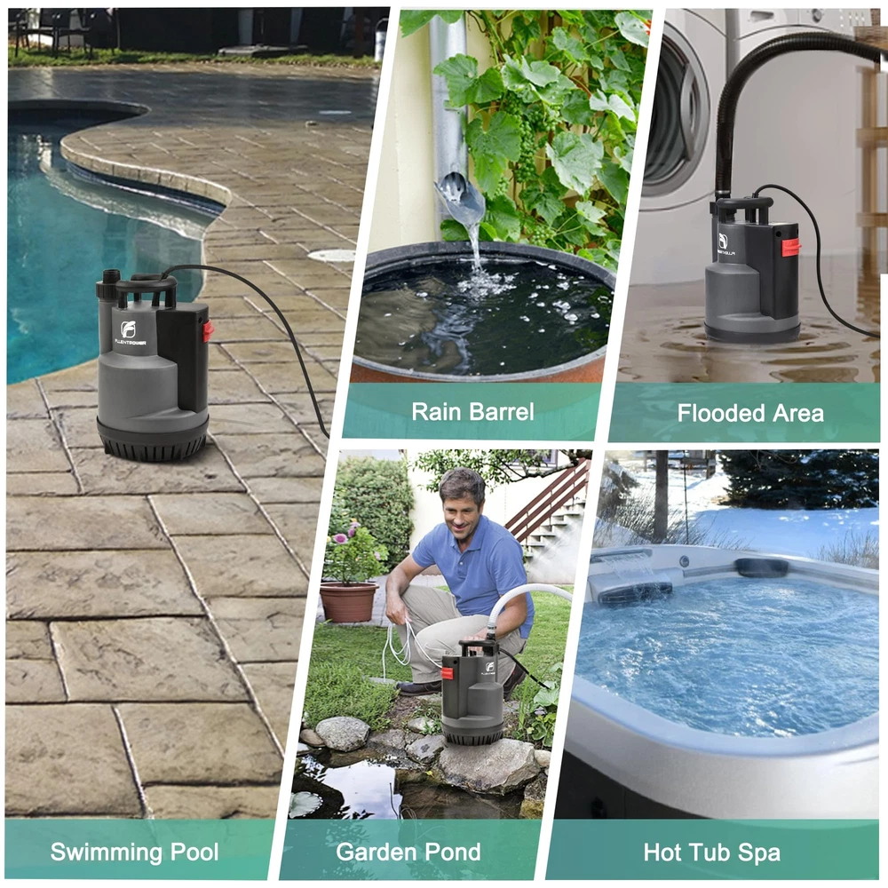 AUTOMATIC MODE: Once the sump pump is plugged in, it will automatically start when the water level is above 4" and shut off when it reaches the stop level of 2". When you start to use this pump, tilt and submerge it in water for a few seconds to expel the air inside MANUAL MODE: If the water level is not high enough to start in auto mode or you want to remove water as low as possible (1/5"), you can switch to manual control. The pump will keep running continuously and will not turn off automatically, so remember to cut off the power immediately to prevent the motor from burning out POWERFUL PERFORMANCE: 1/2 HP POWERFUL MOTOR ensures effective pumping. The pump has a maximum capacity of transferring water up to 2500 GPH with 1-1/2" discharge hose horizontally. It can lift water up to a maximum vertical height of 26'. This submersible pump works with clean water or slightly dirty water, and its bottom grid allows it to pass up to 1/5" solids SAFETY ENSURE & RELIABLE: UPGRADED SEALING STRUCTURE gives pump longer durability, which is much longer than regular mechanical seal. Full corrosion-resistant shell and THERMAL PROTECTION ensures the pump will not be burned out, even when the pump triggers thermal overload protector, the pump will rework after cooling down EASY INSTALLATION: Comes with three plastic adapters: GHT 3/4"+NPT 1" connects standard garden hose for quick installation; G 1-1/2" discharge port connects discharge hose for high capacity pumping WIDELY APPLICATION: Pump also comes with a 16.4-foot long cable cord and a 26-foot nylon rope, which allows the pump to submerge deep enough in the water. Ideal for heavy-duty draining applications including pools, ponds, pits, wells, ditches, basements, etc BUY WITH CONFIDENT: This pump is designed for multi applications and emergency use, like flooding basement, garden pond, hot tub, and so on. Provide lifelong technical consultation and 24h customer service