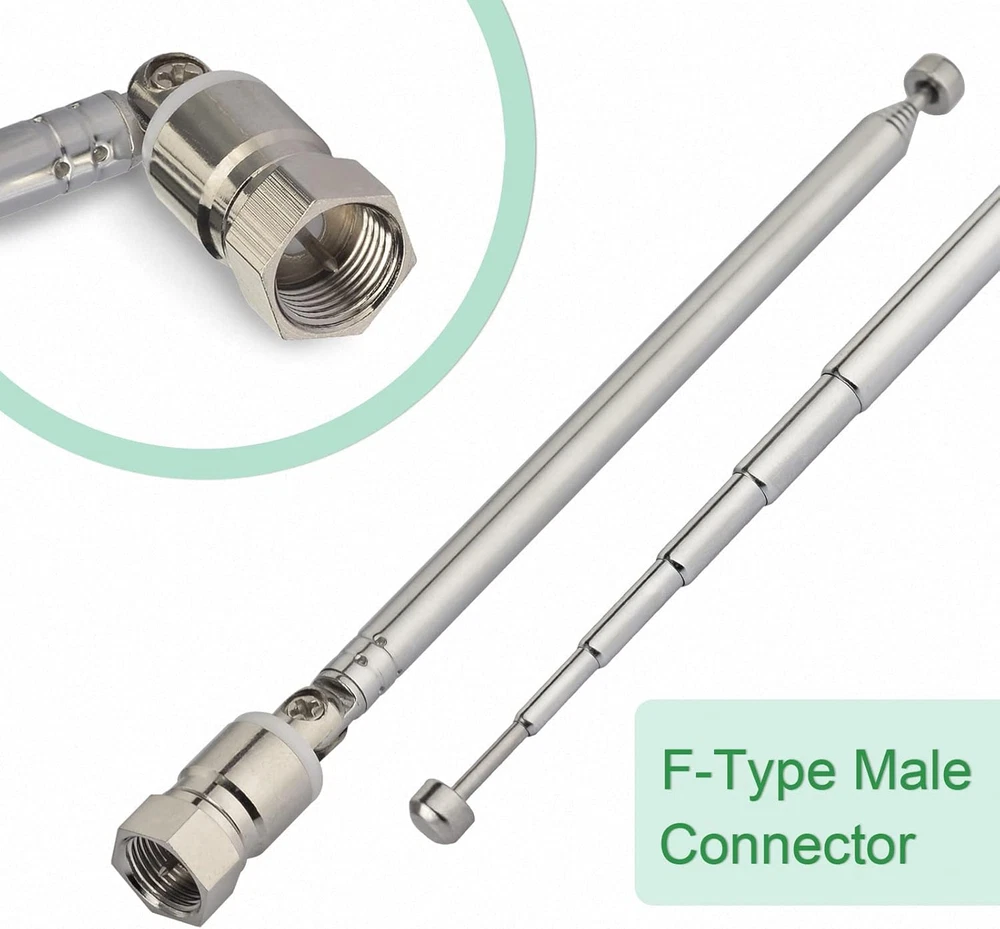 Type: 75 Ohm FM Dipole indoor antenna with type F connector to enhances FM stereo reception Length:13.5CM / 5.3" included "F" connector ,Extend length:51CM / 20in included "F" connector ,Material: Steel, Brass Installation: F type male connctor easy for install Simply screw in it to the intended female connctor antenna connection | Stretch the end of the antenna as far as possible away from the device for the best reception. Application: Fit for FM Radio / DAB / AV Receiver,like Tivoli Audio Sangean WR-11,Sangean WR-2,Sangean WR-12 ,Harmon Kardon Musicsystem radio,SONY, YAMAHA, DENON, TEAC, PIONEER, Panasonic, ONKYO, MARANTZ, SANSUI,Sangean WR-15WL,WR-11SE, WR 22WL,HDR-18, ect Package include: 1pcs telescopic antenna + 1pcs F female to PAL male connector + 1pcs F female to PAL female connector + 1pcs F female to 3.5mm connector Product Description Product Details Sections: 6-Sections Length:13.5CM / 5.3" Extend length:51CM / 20" Material: Steel, Brass Antenna connector: F male connector Excellent fm radio antenna replacement telescopic stainless steel fm radio antenna for table top av home stereo receiver radio receiver indoor and more. Product Application and Installation 1.Great extending antenna for FM Radio. Improved reception in poor reception area 2. Universal compability: this r adio antenna comes with Male "F " connector and 3 types of adapter, PAL male & PAL female & 3.5mm, Widly work with these Radio, HiFi and Mini system: Bose Wave Sangean Cambridge Audio One Pure Evoke Tivoli Audio Demon Roberts Sony Marantz Yamaha Hitachi hi-fi DAB Radio Stereo Receiver etc. 3.Easy Installation comp ared with wire coax antenna, the telescopic radio antenna is more easy to install. You only screw or plug to the antenna socket. With this antenna, you will have really good tiding.