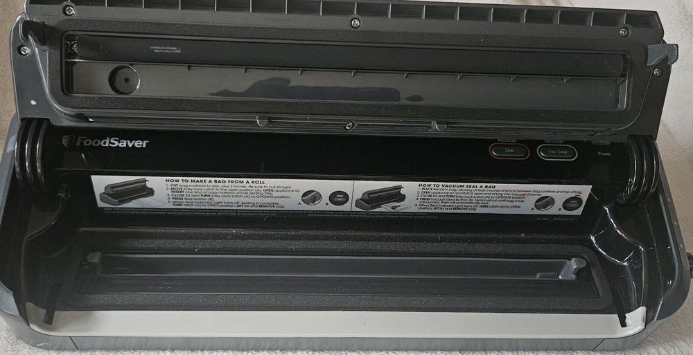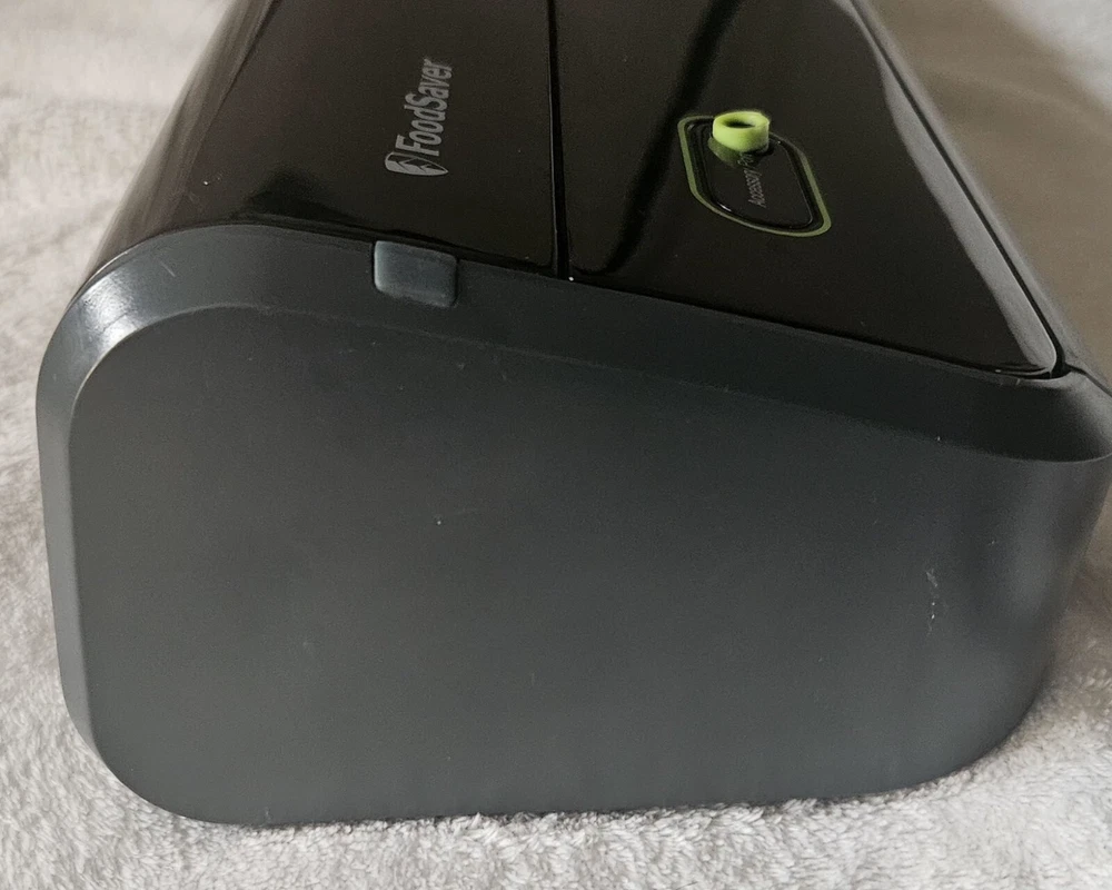 The FOOD SAVER Vacuum Sealer Machine FM2000-015 is a Seal-Only unit designed for electric power sources. It features a sleek black color and a compact design with dimensions of 6 inches in depth, 4 inches in height, and 16 inches in width. Made of plastic, this multifunctional vacuum sealer from the trusted brand FoodSaver is portable and ideal for sealing various food items. With a voltage of 120V and a model number of FM2000-015, this sealing unit does not come with bags or accessories included, making it a convenient addition to any kitchen or dining area.