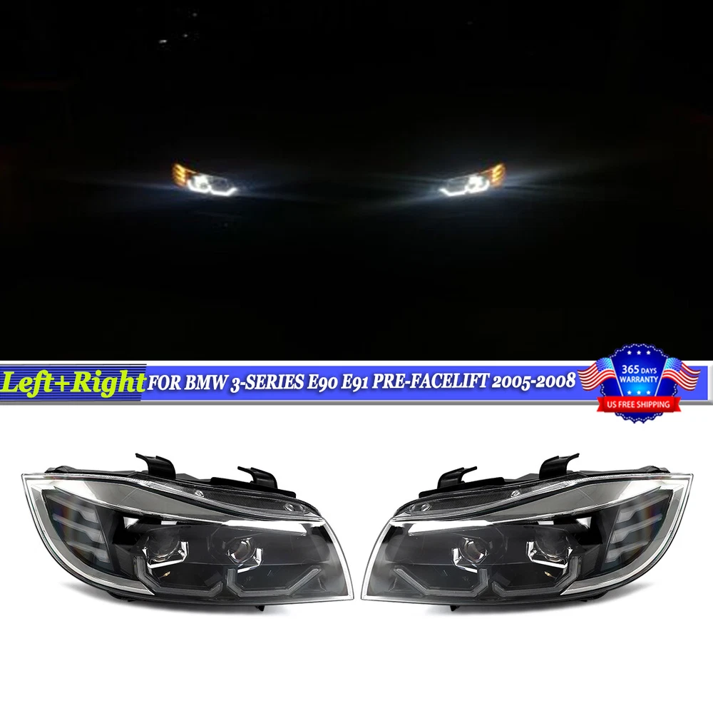 FOR BMW 3-SERIES E90 2005-2008 BLACK FRONT HEADLIGHT LED 3D CRYSTAL U-HALO LH+RH We appreciate you place an order. If you are satisfied with the item, please take a moment to reward our efforrs by leaving us a POSITIVE FEEDBACK and perfect " 5 STAR" scores. If you intend to leave a neutral or negative fe edback, please contact us firstly, so that we can satisfactorily address your concerns and rectify any issues. Specifications: Brand: MagicKit Condition: 100% Brand New Material: Polycarbonate Lens Lense Color: Clear Housing Color: Black Style: Conversion to NEW 3-Series G20 Style Bulbs Type: 3D U-Halo DRL+LED Signal Light Color: White LED Dual U-Halos & Amber LED Running / Turn Signal Lights Part Number: Replace for 63116942725;63117161665;63116942726 Placement on Vehicle: Front,Left,Right Package Size: 24.8''*24.8''*11.42'' (63*63*29cm) Package Weight: 7.79kg Fitment: Fits For 2005-2008 BMW 3-Series E90 Sedan E91 Wagon 4-Door Facelift/LCI Models. Fits Halogen Headlight Models Only Does NOT fit HID Headlight Model Vehicles Does NOT fit Vehicles with AFS Adaptive Headlights Does NOT fit Coupe / Convertible Models Doesn't fit for FACELIFT E90 E91 2009-2011 & E92 E93 M3 Models. Package Include: 1 Pair Front Headlight Assemblies (Left & Right) Installation: Installation Instruction is not included. Professional Installation Is Highly Recommended. We recommend the installation by your local repair workshop. Notes: Please allow 1-3CM differs due to manual measurement. If you are not sure whether the item fits your car,please send me some photos of your car.(the front,the side and the back) Any question please contact me freely. All questions will be replied within 1-2 business day. There might be some delay during weekends and holidays. Professional installation is highly recommended. Any damaged products due to non-professional or user error may not be returned for refund. Due to the different display and different light, the picture may not reflect the actual color of the item. Please confirm your vehicle matches the parts compatibility chart. 1. We Accept Payment Through Paypal Only. 2. The eBay members must fulfill the requirement. (PayPal verified and confirmed address; the account holder must be the receiver). 3. Please complete your payment within 2 days after the item is won. If you have difficulty completing your payment within the required time, please contact us. Non-Pay Dispute will be filed against your account after the 2 th day. 4. Our price does not include Duties, Value Added Taxes, Customs Clearance Fees, and other charges. These charges are the buyer's responsibility. Please check with your country's customs office to determine what these additional costs will be before bidding/buying. 5. The buyer needs to pay for the above fees in case that occurred for certain goods. If the parcel returns back to us due to the buyer refuse to pay those fees, we would not send the parcel again unless the buyer completes those fees and pay all the return and resend cost. The buyer can not cancel the order or request a refund due to this reason. Free Shipping with FedEx/UPS/USPS to the Mainland 48 states ONLY PO Box, AK/HI/PR and APO/FPO address will not be accepted. Package will be shipped to your eBay shipping address within 24 hours (except for weekend and public holiday) after payment is cleared. Payment cleared/received on Friday will be shipped on the next business days (Monday or Tuesday) Orders are typically shipped in 1-2 business day after payment is completed. Shipping confirmation with tracking number will be sent to your eBay email address when your order is shipped. Please note we do not ship orders on Saturdays, Sundays, and national holidays. All our items will be shipped to the address you submit, please confirm your address on before you bid or purchase. Shipping time may vary depends on your area. Delivery may be delayed due to extreme weather or special circumstances. Please wait patiently. Import duties, taxes, and charges are not included in the item price or shipping/handling price. These charges are the buyer's responsibility. Please check with your country's customs office to determine what these additional costs will be prior to bidding or buying. All items sold by us are being described to the best of our abilities, as accurate as possible, and with utmost conscientiousness on our part. However, to avoid any potential oversights, we respectfully request your assistance in helping us to make this a mutually satisfactory transaction by THOROUGHLY reviewing item description and photos, and asking all questions PRIOR TO BIDDING. We stand behind the quality of all of our products. All products are double inspected before stocking and dispatching. However, sometimes mistake may slip by and the product may get damaged during the process of delivery. If such trouble occurs to you, please take a minute to refer to the following instruction. If the package arrives at your location with obvious shipping damage (including broken envelop, empty package and etc), please refuse the shipment. If you find the item is defective after you accept the shipment, please save everything that is attached in the package, including all the documents, and contact us immediately, either through eBay message or email address. You should state your item ID, item title and what the damage is clearly in your email. And please be advised that digital photos must be attached to the email you send. And please bear in mind that you should contact us within 3 days since the day you receive the package, or it will be your own responsibility to take the lost of the defective item. Retail and wholesale products: Car Grille, Car front bumper lip, Car rear bumper diffuser lip, Car side skirts, Car rear spoiler wing, Car mirror cover cap shell, Car fog lamp grille, Car front hood cover, Car OE rep lacement parts, etc. Specifications: Brand: MagicKit Condition: 100% Brand New Material: Polycarbonate Lens Len
