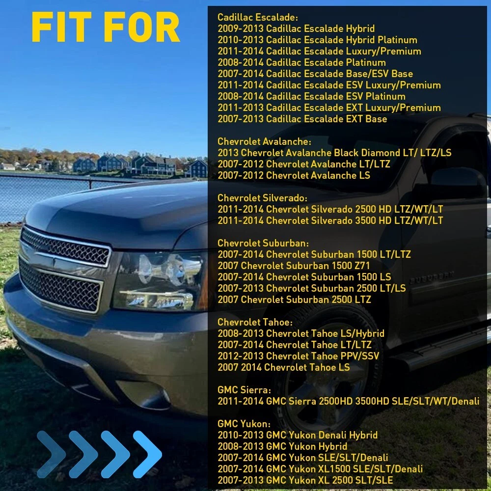 LED Side Mirror Puddle Lights For Cadillac Escalade, Chevrolet Avalanche,Silverado,Suburban, Tahoe GMC etc. Fit for: Cadillac Escalade: 2009-2013 Cadillac Escalade Hybrid 2010-2013 Cadillac Escalade Hybrid Platinum 2011-2014 Cadillac Escalade Luxury/Premium 2008-2014 Cadillac Escalade Platinum 2007-2014 Cadillac Escalade Base/ESV Base 2011-2014 Cadillac Escalade ESV Luxury/Premium 2008-2014 Cadillac Escalade ESV Platinum 2011-2013 Cadillac Escalade EXT Luxury/Premium 2007-2013 Cadillac Escalade EXT Base Chevrolet Avalanche: 2013 Chevrolet Avalanche Black Diamond LT/ LTZ/LS FOR CHEVY SILVERADO TAHOE GMC YUKON SIERRA ESCALADE SIDE MIRROR PUDDLE LED LIGHT LED Side Mirror Puddle Lights For Cadillac Escalade, Chevrolet Avalanche,Silverado,Suburban, Tahoe GMC etc. Fit for: Cadillac Escalade: 2009-2013 Cadillac Escalade Hybrid 2010-2013 Cadillac Escalade Hybrid Platinum 2011-2014 Cadillac Escalade Luxury/Premium 2008-2014 Cadillac Escalade Platinum 2007-2014 Cadillac Escalade Base/ESV Base 2011-2014 Cadillac Escalade ESV Luxury/Premium 2008-2014 Cadillac Escalade ESV Platinum 2011-2013 Cadillac Escalade EXT Luxury/Premium 2007-2013 Cadillac Escalade EXT Base Chevrolet Avalanche: 2013 Chevrolet Avalanche Black Diamond LT/ LTZ/LS 2007-2012 Chevrolet Avalanche LT/LTZ 2007-2012 Chevrolet Avalanche LS Chevrolet Silverado: 2011-2014 Chevrolet Silverado 2500 HD LTZ/WT/LT 2011-2014 Chevrolet Silverado 3500 HD LTZ/WT/LT Chevrolet Suburban: 2007-2014 Chevrolet Suburban 1500 LT/LTZ 2007 Chevrolet Suburban 1500 Z71 2007-2014 Chevrolet Suburban 1500 LS 2007-2013 Chevrolet Suburban 2500 LT/LS 2007 Chevrolet Suburban 2500 LTZ Chevrolet Tahoe: 2008-2013 Chevrolet Tahoe LS/Hybrid 2007-2014 Chevrolet Tahoe LT/LTZ 2012-2013 Chevrolet Tahoe PPV/SSV 2007 2014 Chevrolet Tahoe LS GMC Sierra: 2011-2014 GMC Sierra 2500HD 3500HD SLE/SLT/WT/Denali GMC Yukon: 2010-2013 GMC Yukon Denali Hybrid 2008-2013 GMC Yukon Hybrid 2007-2014 GMC Yukon SLE/SLT/Denali 2007-2014 GMC Yukon XL1500 SLE/SLT/Denali 2007-2013 GMC Yukon XL 2500 SLT/SLE Specifications: OE: 15875000,15874999 Bead color: white light Installation position: Bottom of the rear view mirror LED number: 18 Lumen: 140lms Color temperature: 6000K Waterproof: IP67 Service life: 50000+ hours Features: *Update Technology Our mirror puddle lamp adopts brighter superior LED chips than the original car , which can provide 6000k powerful light to maximize ground illumination. *Durable Materials Made of high-quality materials to ensure its long service life and durability. *Installation Notices Simple installation with a direct replacement, other modifications are not required. *Excellent service Pack of 2 LED side mirror puddle lights include driver and passenger side. For any questions about this item, please feel free to contact us within 24 hours! We'll reply to you as soon as possible. Packaging include: puddle light*2 Item Specifics Brand AUXITO Manufacturer Part Number YG0714 Number of Bulbs 2 To Fit Side Mirror Rear View Light Bulb Color Clear Lumen 140lms Type Car Side Mirror Light Color Temperature 6000K Placement on Vehicle Left, Right Material ABS and Clear PC Lens Light Source LED Fitment Type Direct Replacement Warranty 2 Year Voltage 12V Lighting Technology LED Suitable For Side Mirror Rear View Light Light Color Cold White Fitment for 2007-2014 Chevy Silverado Sierra 2500HD 3500HD Tahoe GMC Manufacturer Warranty 2 Years Bulb Life Hours Up to 5,000 Hours Fitment2 for Yukon Escalade Suburban 1500 Features CANbus Compatible Universal Fitment No Universal Fitment No FAQ ♥ If you have a decoding problem or any other problems, please contact us first, we will help you with it. We will reply you within 24 hours in working days. I'm a new seller, thanks a lot for your trust and convince! I will serve you with all my heart. ♥ Q1: Will this bulb fit my vehicle? A: We can match almost any vehicle to one of our bulb sizes. eBay only lets us include some vehicle fitments per listing, but if your vehicle does not show up on the compatibility table at the top of our listings, welcome you to contact us for free consulation before purchasing a product. Q2: My item has not arrived, what's taking so long? A: Sometimes items take longer than expected, especially if it’s going far or to rural area. Check with your post office to see if your item has been held up. Sometimes Royal Mail will not update a tracking number until it has arrived at its destination. If your item still don't arrive after a few days, let us know so we can double check for you and help solve it asap. Q3: My bulbs won't fit, help! A: Special bulb holder may be required. See if you can take the holder from the stock bulb. If not, let us know. The bulb size may be wrong, double check the item you received with the item you ordered. Do you have an aftermarket lighting housing? These may not be perfectly fitted for aftermarket bulbs and will require some manual modifications. Q4: Neither side lighting up? Both sides flicker, hyper flash, or work inconsistantly. A:Check the light fuses, and then check the ballast plugs to insure correct installation. If this doesn't work, there may be a voltage problem with the vehicle. You probably just need a relay or capacitor. Even though some bulbs are builtin resistors, they may still need a decoder. Payment (1). We gladly accepts payment via PayPal, We will ship your item(s) within 24 hours. (2). Before payment, please keep the consistency of Paypal address and ebay address. (3). Quantity orders are welcome! Returns (1). We offer 60 days free return policy. Please contact us within 60 days from the date you receive your order if you have any issues with the product or want return. Refund will be send after we got your resend package. (2). All returned items should be in the original packaging , return tracking information should be provided . Contact us (1).Negative feedback will not help resolve any problems you have, please contact us via eBay messages before leaving neg