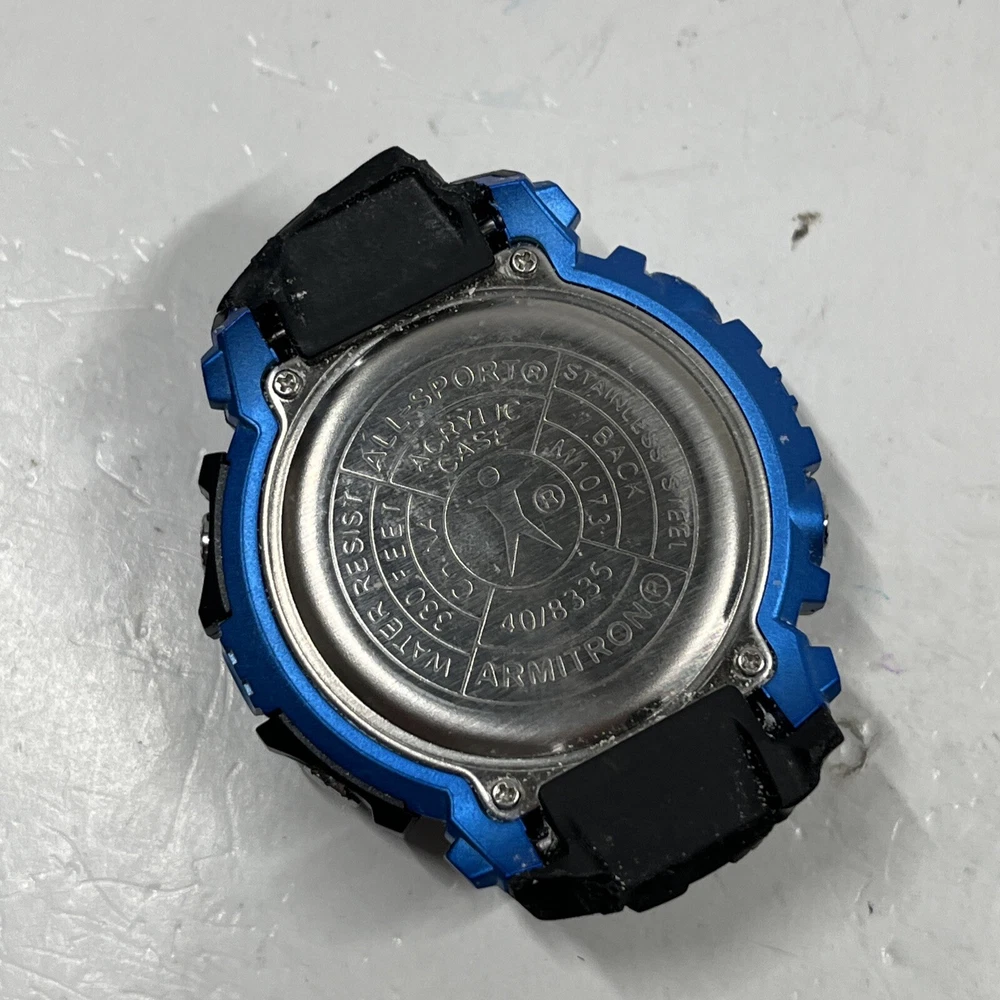 (FOR PARTS) Armitron Pro Sport 40/8335 Mens Digital WR 330 FT Blue Black Watch Watch is previously used and broken, needs a battery. Face only, the bands were cut off for some reason and are still attached. See all photos. You will receive this exact item pictured. It is a parts only or project. Thank you for viewing! We appreciate your business from the bottom of our hearts. We pack and ship all items same or next business day. We ship with USPS Ground Advantage. Always free shipping for all items across our entire store. All of our listings and descriptions are made in the best faith possible to accuracy and honesty of what we are offering. We inspect EVERY SINGLE ITEM to the best of our knowledge and ability before making it available for sale. Why shop with us? We are in the business of your satisfaction here at New Era Deals. You do not need to look any further when it comes to friendly, helpful customer service. Do not hesitate to ask us any questions. If by chance any issue arises with an item, we guarantee we will help find a solution. 30 day returns are accepted for all items available in our store. At the end of the day, we put our customers happiness above all. Please note that while we do offer returns on every item in our store, we have a 0 tolerance policy for fraudulent and unfaithful returns. If you are found to be stealing or abusing our return policy (i.e. returning an empty box or different item from what was purchased) we will 100% reach out to eBay and the local authorities. PLEASE use returns in an honest manner. Our story: We are a small group of eBay sellers with over 20 total years of experience selling on eBay. We collaborated in January 2024 to create project New Era Deals! Selling here on eBay is our pride and passion and lets us express our entrepreneur goals. We are very pleased to bring to our valued customers quality products across endless categories. We appreciate every single one of our past, present, and future customers very deeply!