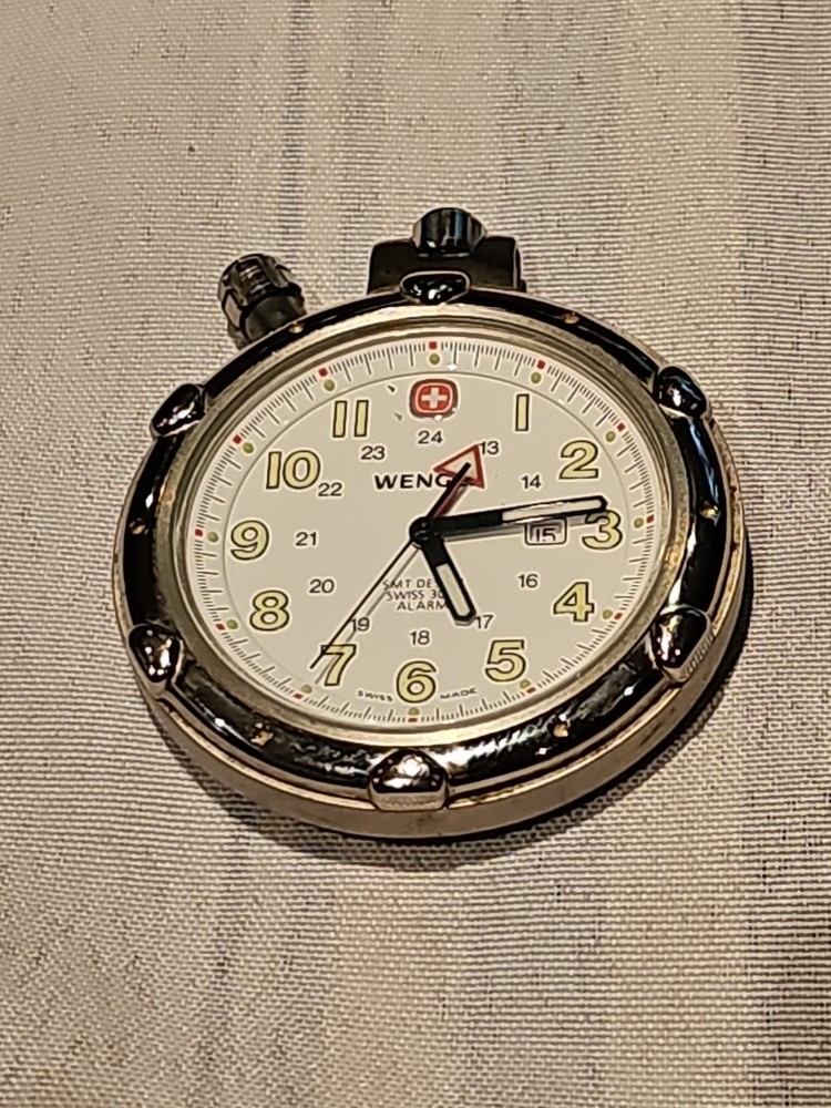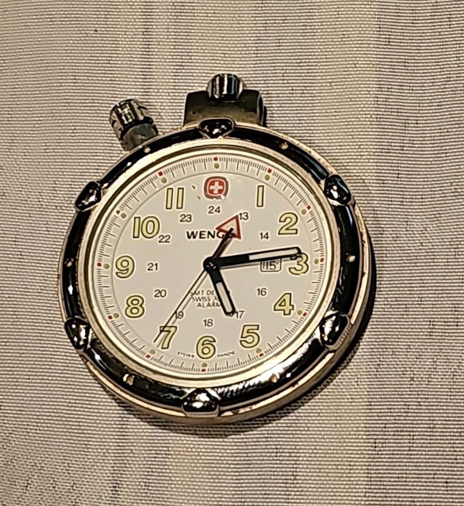 For parts or repair whatch doesn't work we installed a new battery and didn't work The product is a Swiss made Wenger pocket watch with a stainless steel metal case. Designed for men, this specific model is the Wenger 098.0475. Perfect for those looking to repair or use for spare parts, this watch combines precision craftsmanship with durable materials. Ideal for watch enthusiasts or collectors of vintage timepieces, the Wenger pocket watch offers a touch of classic elegance and functionality.