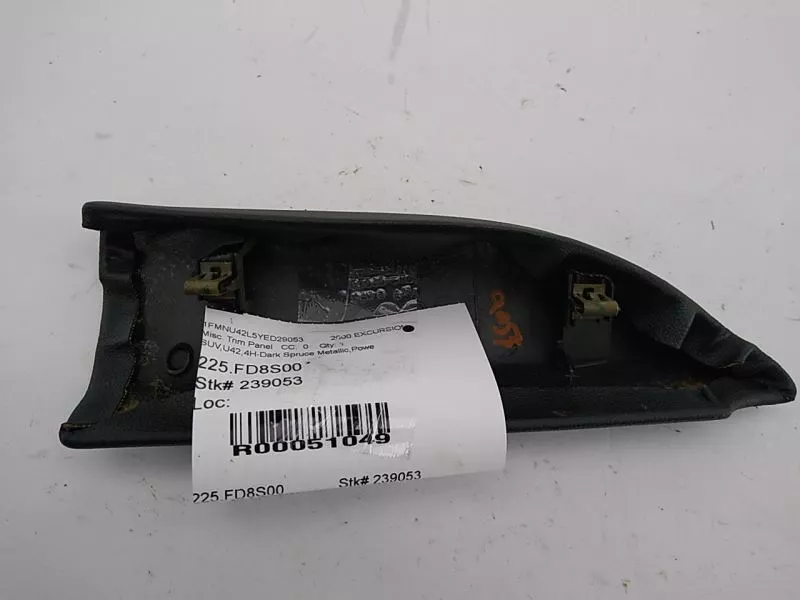 Welcome to Playground - Premium Auto Recycling Feedback [ Add to Favorite Seller me Our eBay STORE New Arrivals All Items Contact Us Most ITEMS SHIPPED WITHIN 2 Business Days Trusted Store customer service is our top priority Product information FORD EXCURSION Front Left Interior Door Panel Mirror Trim Panel 00-05 Review photos this is your actual part Donor Vehicle: Model: EXCURSION Year: 2000 Miles: 254000 - 0=N/A or Unknown Stock #: 239053 Video: Go to YouTube and search for: "Playground PAR 239053" Part Detail: Part Placement: Options/Color: SUV,U42,4H-Dark Spruce Metallic,Powe Description: Front Left Interior Door Panel Mirror Trim Panel Leather has scuffs 17D699AF Inventory ID: 51049 Description Front Left Interior Door Panel Mirror Trim Panel Leather has scuffs 17D699AF This part will fit these makes and models with these options Shipping Playground PAR, LLC ships to US addresses within the continental 48 states. Shipping to Alaska, Hawaii, Puerto Rico, APO, FPO or PO Box addresses and International is available for select parts only. Please contact us through eBay messaging for details and shipping rates for other items. Local Pick-up at our facilities is available. Please contact us prior to your purchase to arrange local pick-up. Please allow up to 10 days for delivery unless your part is included in eBay's Guaranteed Delivery Program. Most areas in the US are within 5 days. If an item arrives damaged, please contact us via eBay messaging within 24 hours for assistance. Warranty Return Policy All parts we sell come with a 3 0 Day Money Back Guarantee unless otherwise stated. The 30 day period starts when the item is delivered. Please contact us through eBay messaging for a Return Merchandise Authorization Number (RMA) before returning any part. We do not cover the cost of labor charges during the installation of your parts. All original shipping costs are non-refundable. Parts must be returned in the same condition as when you received the part. Buyer is responsible for all return shipping costs. Please use the Contact Seller feature if you have questions. Warranty All of our parts (except AS-IS and PARTS ONLY parts) are covered under 60 day warranty. Our warranty policy is below: 60 days starts as of the date of purchase. All requirements of our return policy are part of our warranty policy. This includes the purchaser paying for return shipping. There are no reimbursements for labor, diagnostics, towing, car rental, lost wages, programming or reprogramming. The warranty is for the original purchaser only and is not transferable or assignable. This warranty only covers when parts are used in normal driving conditions and does not cover accidents, abuse, neglect, improper installation, improper maintenance, off-road or use outside of the proper vehicle. Playground may choose to repair, replace or refund the part based on available stock at our discretion. Playground reserves the right to use a repair facility of its choosing to diagnose or perform a warranty claim repair. Parts are not covered for external fluid leaks. We recommend that seals and gaskets be replaced as part of the repair process. Proof of proper lubrication and refilling of components is a requirement for warranty claims. Many electronic modules and components require programming. This process must be followed or the part may not operate correctly, or may be damaged. Proof of programming is required for a warranty claim. Major components are stamped and may have heat sensitive tabs attached to indicated overheating that would void warranty. Warranty covers the base component and none of the other attached parts. We are selling the single part and other parts left attached are there for possible convenience or to protect the part we are selling. These extra attached parts are not covered by any warranty. At no time will the warranty claim ever exceed the original purchase price of the part. Payment Playground PAR, LLC only accepts Ebay Managed Payments for items in our eBay Store. Sales tax will be applied to all orders due to Ebay Policy. Contact Us Please contact us prior to purchasing this part if you have any questions regarding our business policies, the warranties or guaranties we offer or the fitment of this part with your vehicle. Want better photos? Contact us, we can get them to you. We strive to make sure your vehicles repair needs are met the first time you order a part through our store on eBay. To do so, we are happy to verify your vehicles VIN number prior to your purchase, please use the Contact Seller feature within the eBay listing. Â Playground PAR, LLC ships to US addresses within the continental 48 states. Shipping to Alaska, Hawaii, Puerto Rico, APO, FPO or PO Box addresses and International is available for select parts only. Please contact us through eBay messaging for details and shipping rates for other items. Local Pick-up at our facilities is available. Please contact us prior to your purchase to arrange local pick-up. Please allow up to 10 days for delivery unless your part is included in eBay's Guaranteed Delivery Program. Most areas in the US are within 5 days. If an item arrives damaged, please contact us via eBay messaging within 24 hours for assistance. Return Policy All parts we sell come with a 3 0 Day Money Back Guarantee unless otherwise stated. The 30 day period starts when the item is delivered. Please contact us through eBay messaging for a Return Merchandise Authorization Number (RMA) before returning any part. We do not cover the cost of labor charges during the installation of your parts. All original shipping costs are non-refundable. Parts must be returned in the same condition as when you received the part. Buyer is responsible for all return shipping costs. Please use the Contact Seller feature if you have questions. Warranty All of our parts (except AS-IS and PARTS ONLY parts) are covered under 60 day warranty. Our warranty policy is below: 60 days starts as of t