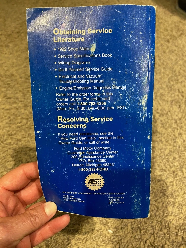 This is a FORD F-Series Owner Guide/Manual from 1992. It came from a F150. Cover shows some wear but the inside pages are all in great shape.