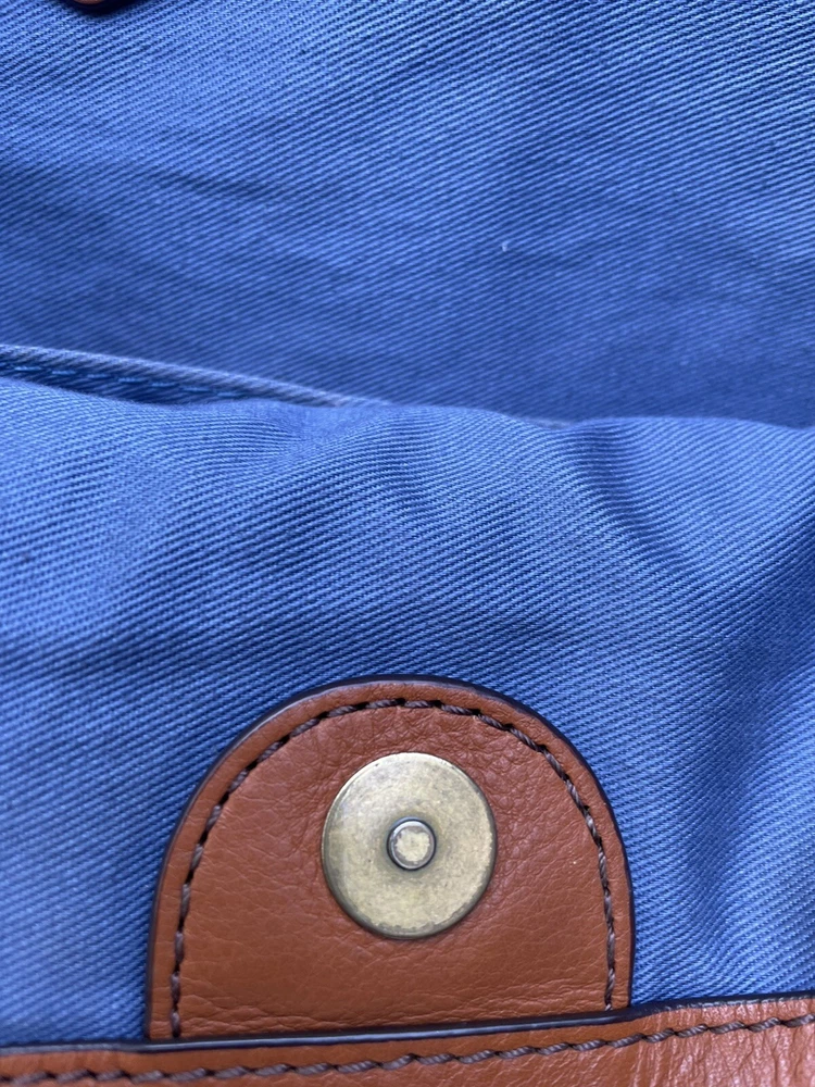 Pre-owned FOSSIL Leather Tote Bag Purse Brown Multi Colored Tassels EUC RARE! Very Nice!. Tan leather exterior with brass toned hardware and multicolored leather tassels. Denim blue lining. 1 zipper and 2 slip pockets. Double leather straps w/ drop of 9". Magnetic closure. 13"L across the base, 17.5"L across the top x 10.5"H x 4.25"D Has extremely minor marks on the side, shown in last two photos. Overall, it shows minimal signs of use, is very clean, and in well cared for condition. Please feel free to contact us with any questions or concerns you may have regarding our active or completed listings. We will do our best to provide you with the information you are looking for. Please send all communication via the eBay messaging system. New items will state they are new in the listing. If you are unhappy with your new item, you may return the item in its original packaging for a refund. Item must be received by us before a refund will be issued. Return shipping will be at the buyer's expense and is not refundable. Unless otherwise stated, All items being sold from our eBay page should be considered pre-owned or second-hand. Please read the description and look at each photo carefully. If an item has a defect or an issue with condition, we will do our best to describe it and it will be noted in the description and/or photos. Items may need ironed/steamed as wrinkling may occur in storage or shipping. We will only ship to the address the buyer has registered with eBay Customer service is our top priority. If you make a purchase from us and an issue arises; please give us a chance to make things right by contacting us before leaving negative feedback or opening a case. We promise to resolve problems quickly and professionally. Thanks so much! South Shiloh