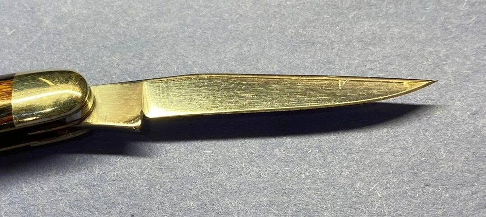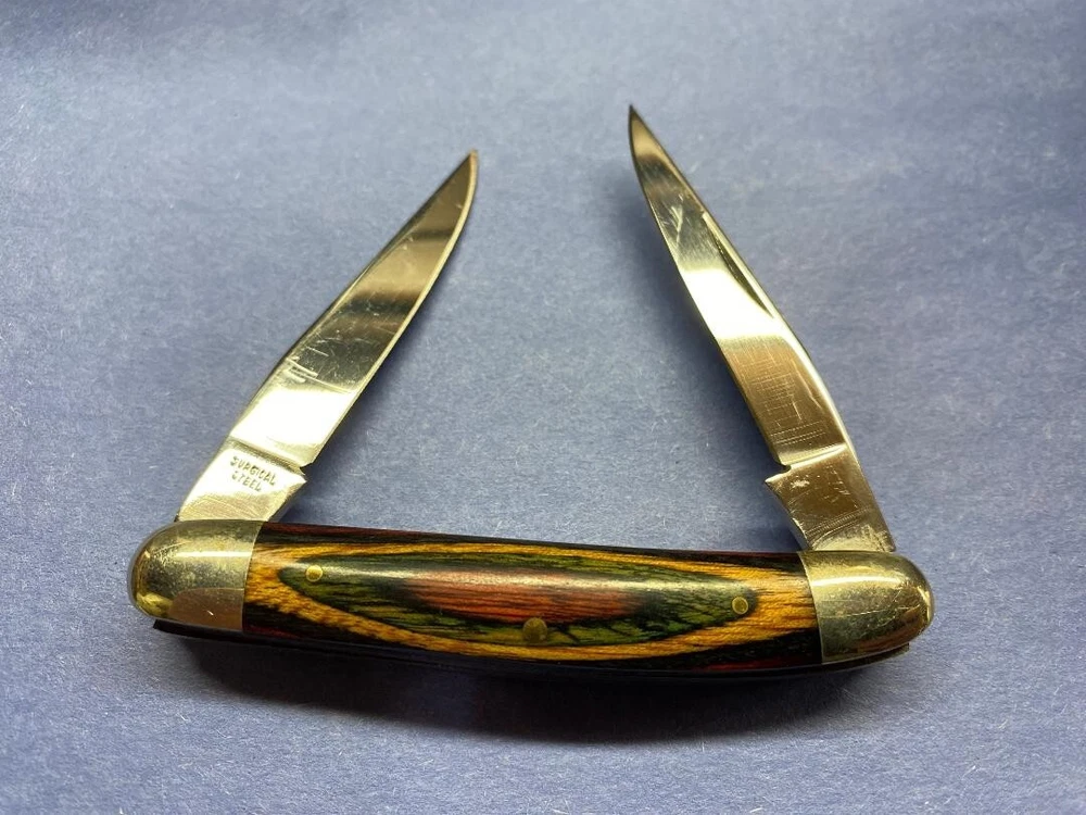 This is a very nice knife. Blades have original edges and good snap. Scales have no chips or cracks. Bolsters have very minor blemishes. Please see the photos to appreciate the overall condition. Thanks for taking a look.