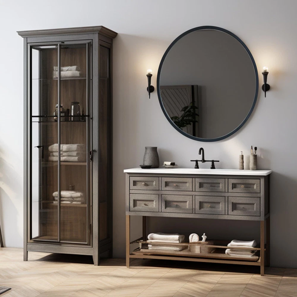 Round Mirror: Wall-mounted mirror with a diameter of 24 inches. 90% of the glass, the mirror back with high viscosity anti-shatter film treatment, even if the impact of external forces, can prevent the broken glass splash. 10% of the frames are made of metal, which is not easy to deform, durable and more protective. High Definition Imaging: Mirror double-layer aluminum plating to prevent oxidation. Ultra high reflectivity, true mirror image. Clear reflection without visual distortion. The use of angled glass mirrors effectively enhances the stereoscopic effect. It is convenient for you to make up, protect your skin, organize your appearance, etc. Multi Purpose: 24 inch wall-mounted mirrors, simple and atmospheric design. Suitable for living rooms, bathrooms, entrances, corridors, and dressers. Perfect size for everyday needs. Convenient Installation: You only need to fix the complimentary expansion screws in a suitable position on the wall to hang the mirror. Easy installation. Warm Reminder: This product is fragile. In order to prevent wall mounted mirrors from being damaged during transportation, they have been safely packaged in a box. If damage occurs during transportation due to uncontrollable factors. You can contact us, and we will respond promptly and help you solve the problem.