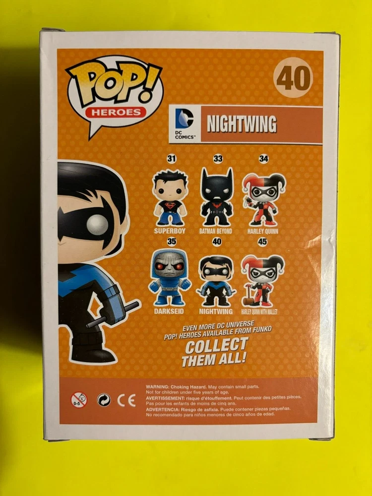 HERES A GREAT FUNKO POP YOU GOTTA HAVE !! ITS NIGHTWING !! CHECK THE PICTURES WHAT YOU SEE IS WHAT YOULL GET !! .BUYER PAYS 13.50 FOR USPS SHIPPING IN THE USA ONLY!!TRANSACTION MUST BE COMPLETE AT AUCTION END.I ACCEPT PAYMENTS THROUGH PAYPAL ONLY!! THANKS FOR LOOKING!! I DO COMBINE SHIPPING SO PLEASE CHECK MY OTHER ITEMS!! IF YOU DONT LIKE MY PRICES MAKE ME AN OFFER!! THE WORST I CAN DO IS SAY NO