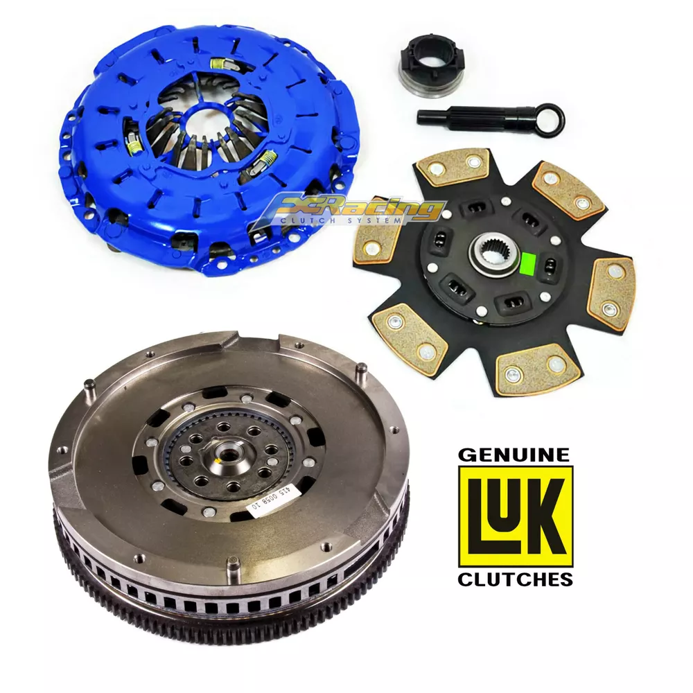 Item Description | Vehicle Application | Shipping & Handling | Payment Details | Return Policy | About Us About this item FX Racing Stage 3 clutch kit is a direct factory replacement clutch kit and it's designed for those who seek the ultimate in clutch performance and reliability. FX Racing clutch kit includes only the highest grade clutch components from the world's leading racing clutch manufacturers. The 6-puck copper ceramic (also known as MIBA) disc features 12 high-coefficient friction pads that are resistant to slippage and ensures long lasting life. The heavy-duty sprung center unit boasts heat treated springs and retainer rivets for the maximum power and durability. The FX Racing pressure plate features special single diaphragm design to increase clamp load. It features induction hardened diaphragm, CNC machined castings, stronger drive straps and rivets. FX Racing pressure plate provides smooth and precise feel with easy modulation. All FX Racing pressure plate is load tested on a special testing tool for quality assurance. * Disclaimer: We recommend all brand new clutch kits to be installed with brand new flywheels for maximum performance and longevity. All new clutch kits requires 500 mile break-in period. This complete clutch kit includes: LuK DMF Cast Dual Mass Flywheel (DMF027 / 29.70 lbs) FX Racing Heavy-Duty Pressure Plate FX Racing Stage 3 'MIBA' Copper Ceramic 6 Puck Sprung Disc (9-7/16" , 23 spline) Brand new FX Racing HD Release Bearing Brand new Alignment Tool Basic Installation Guide Horsepower Rating: 404 HP / Torque Capacity: 415 ft/lbs FX-02041R3-SS; DMF027-CP #47 Back to Top Vehicle Application Fits 2000 - 2002 Audi S4 (2.7L DOHC 6cyl Bi-Turbo APB) Fits 2000 - 2004 Audi A6 Quattro (2.7L DOHC 6cyl Bi-Turbo APB) Fits 2001 - 2005 Audi Allroad Quattro (2.7L DOHC 6cyl Bi-Turbo APB) Back to Top Shipping & Handling NOTE: Payments received after 4:30 p.m. PST Monday - Friday will be shipped the following business day. Payments received on Weekends and Holidays will be processed and shipped on the following business day. SHIPPING SERVICES: U.S. CANADA All other International FREE SHIPPING to Lower 48 States - Via UPS Ground/ USPS Priority. FREE SHIPPING to AK, HI, PR, PO Box, Guam, U.S. Virgin Islands and Military Address - Via USPS Priority ONLY. Via UPS Standard. Please select Canada and enter your postal code in the shipping calculator located in the Shipping and payment tab above to obtain your shipping rate. Via UPS. Please select your country in the shipping calculator located in the Shipping and payment tab above to obtain your shipping rate. Back to Top Payment Details Orders shipped to California address are required to pay a CA sales tax. PayPal payment can only be shipped to an address you entered at the time of check out. International Buyers: Import duties, taxes, and charges are not included in the item price or shipping cost. These charges are the buyer's responsibility. In some instances, please expect delays due to customs. Back to Top About Us Major distributor of world's leading clutch manufacturers since 1999 including FX Racing ACT, Exedy, Valeo, Sachs, LuK, Fidanza and Seco. Largest clutch seller on eBay with best feedback. Industry leading customer service. All inquiries responded within 24 hours. We stock over $2,000,000 of top quality products. Offers industry's best 12 months or 12,000 miles manufacturer defect warranty. Thousands of clutch parts in stock ready to ship. Business Hours: 9AM - 6PM Monday - Friday (Pacific Standard Time) Email: Please contact us through eBay message by clicking on "Ask a question" Back to Top