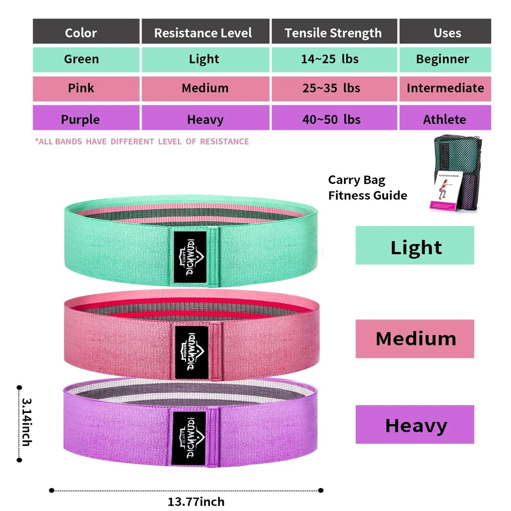 š” ćHigh Quality Fabric MaterialćThe exercise bands resistance bands set are made of high quality fabric material with exquisite weaving process. The silky smooth material enhances the comfort and durability of the hip exercise band. š” ćMULTI FUNCTIONAL PURPOSEć Sports bands can be moved, arms, hips, legs, etc. It can make your muscles stronger or more plump your hips. Shape the perfect figure. š” ć3 RESISTANCE LEVELSćThere are 3 different color resistance bands, the same size and different strengths. The cloth resistance bands provides greater flexibility and more sports selectivity for your exercise. š” ćNON-SLIP AND DURABLEćThe leg and hip exercise band set is non-slip and very wear-resistant, can be used with fitness equipment and will not lose elasticity due to frequent use and activity. š” ćLIGHTWEIGHT PORTABLEćPowerful workout bands for women and men, The resistance zone is particularly lightweight. It only uses a small space to carry it. It is very easy to carry. You can easily put it in the suitcase and handbag.
