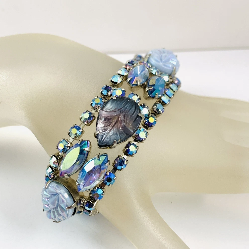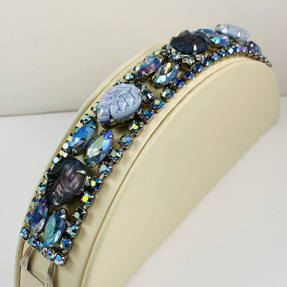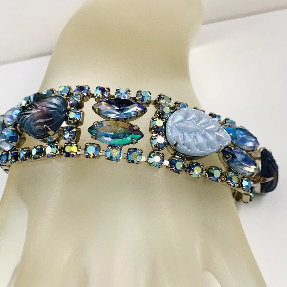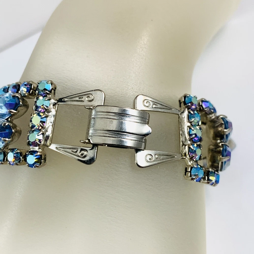 Fabulous Vintage Aurora Borealis AB Rhinestone Silver Tone Bracelet 7"