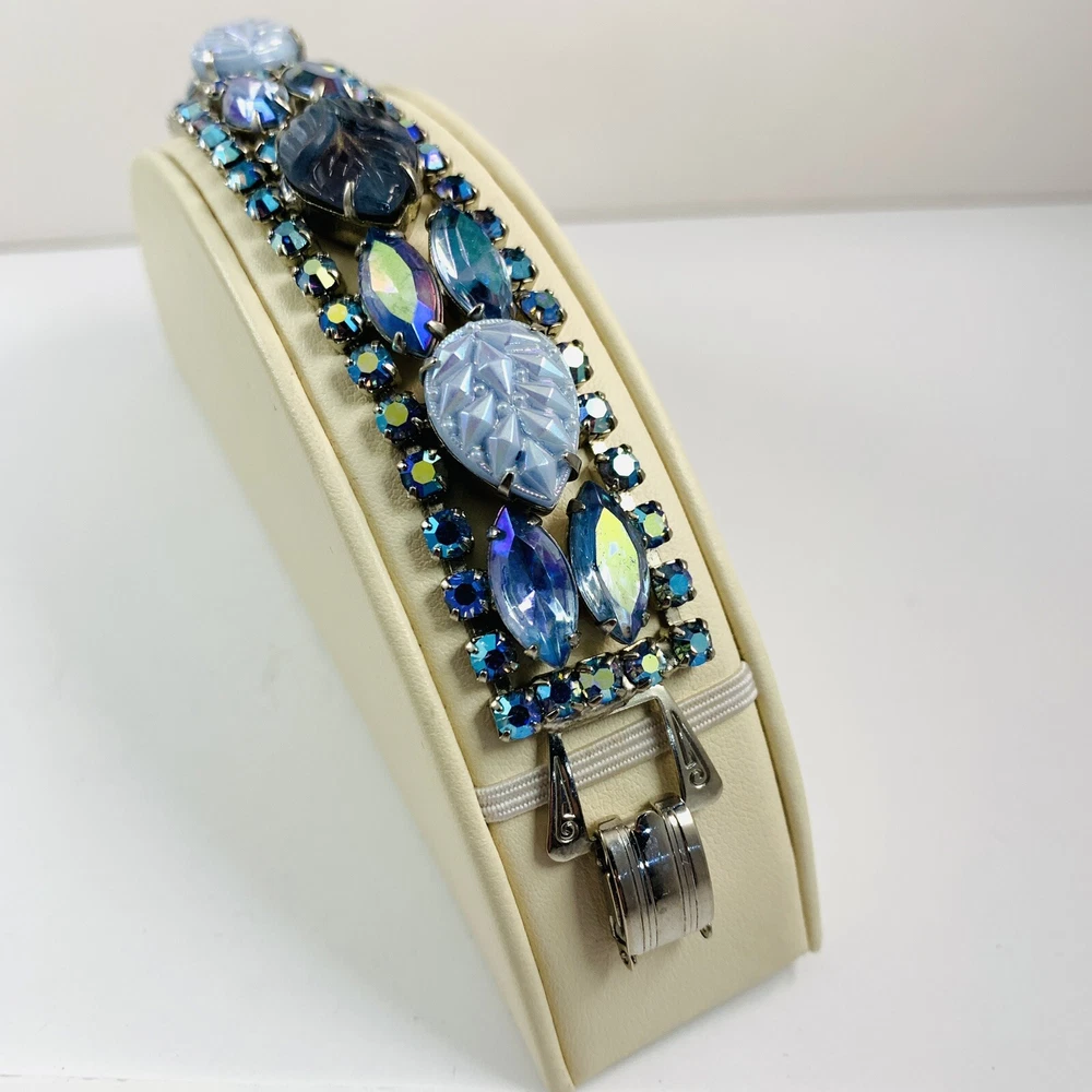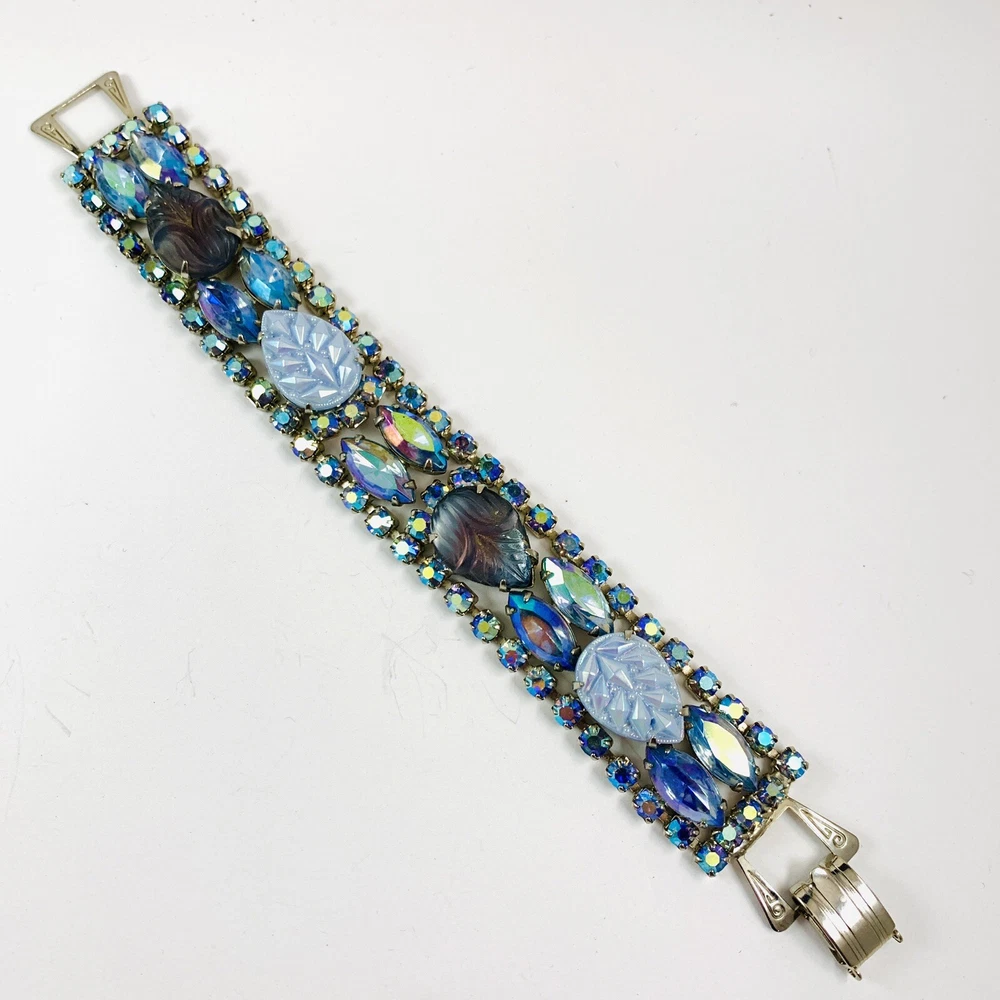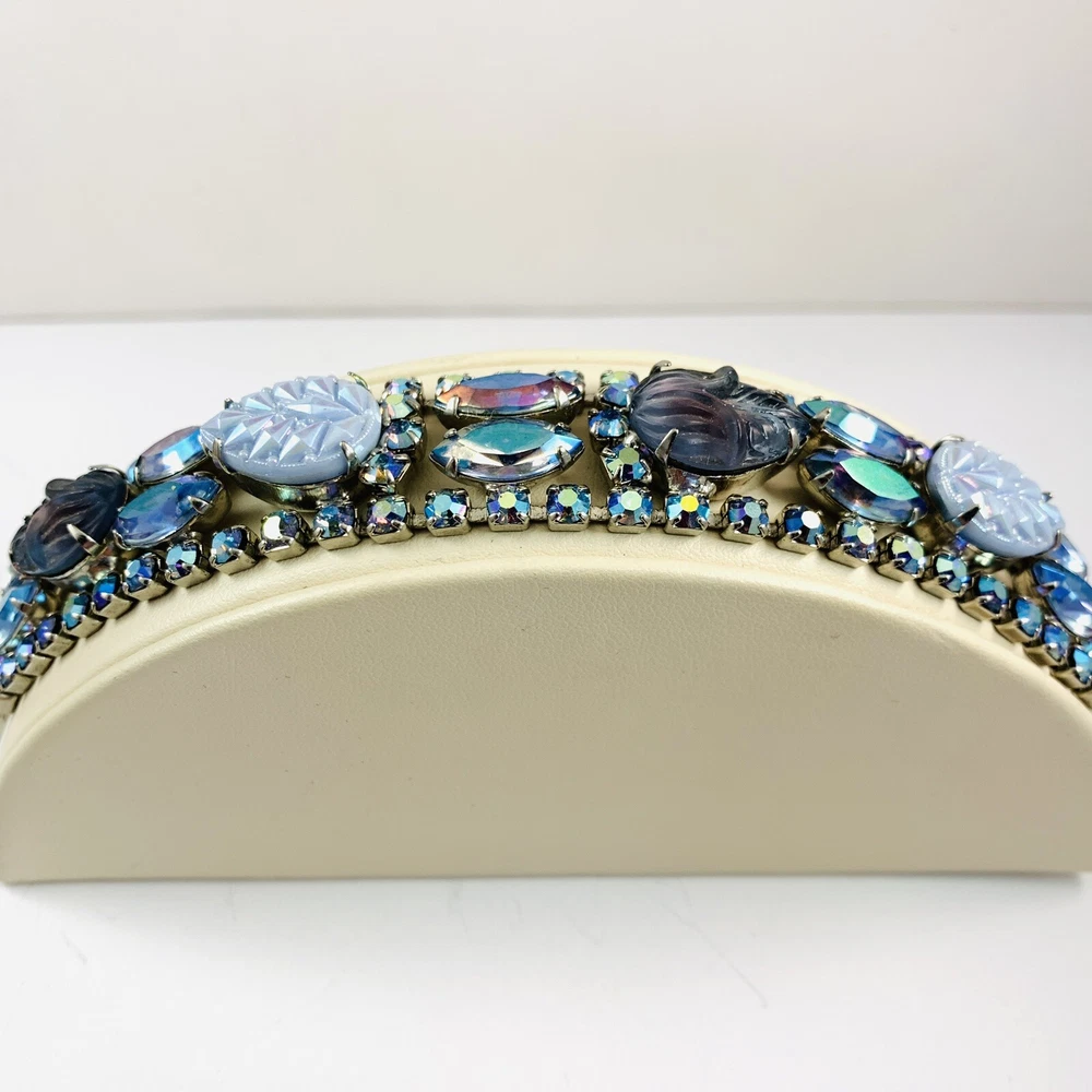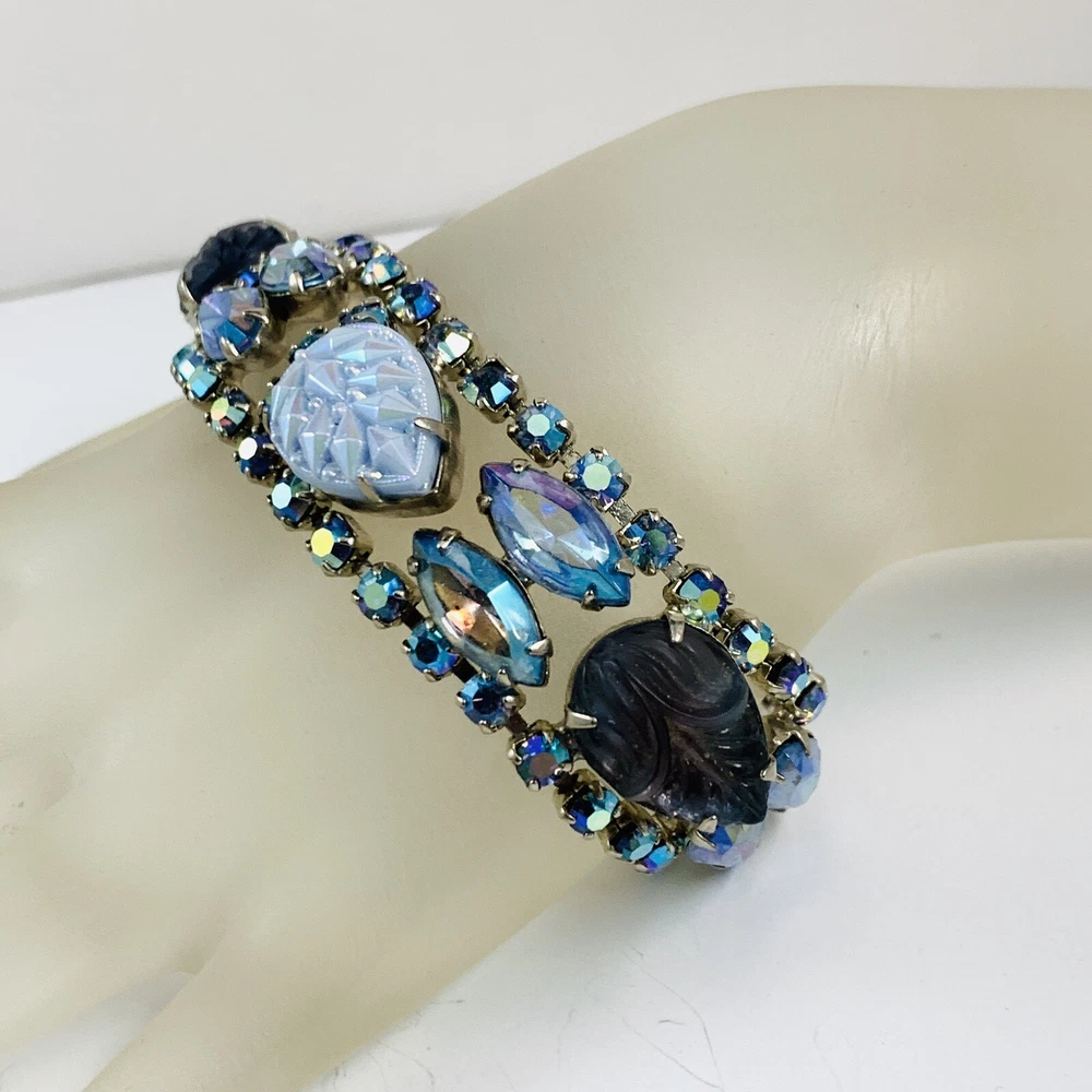 Fabulous Vintage Aurora Borealis AB Rhinestone Silver Tone Bracelet 7"