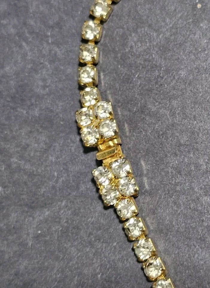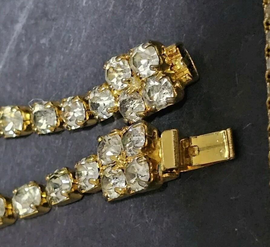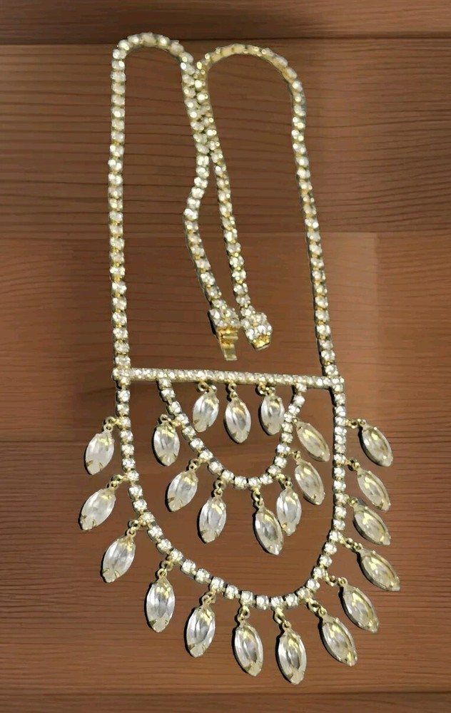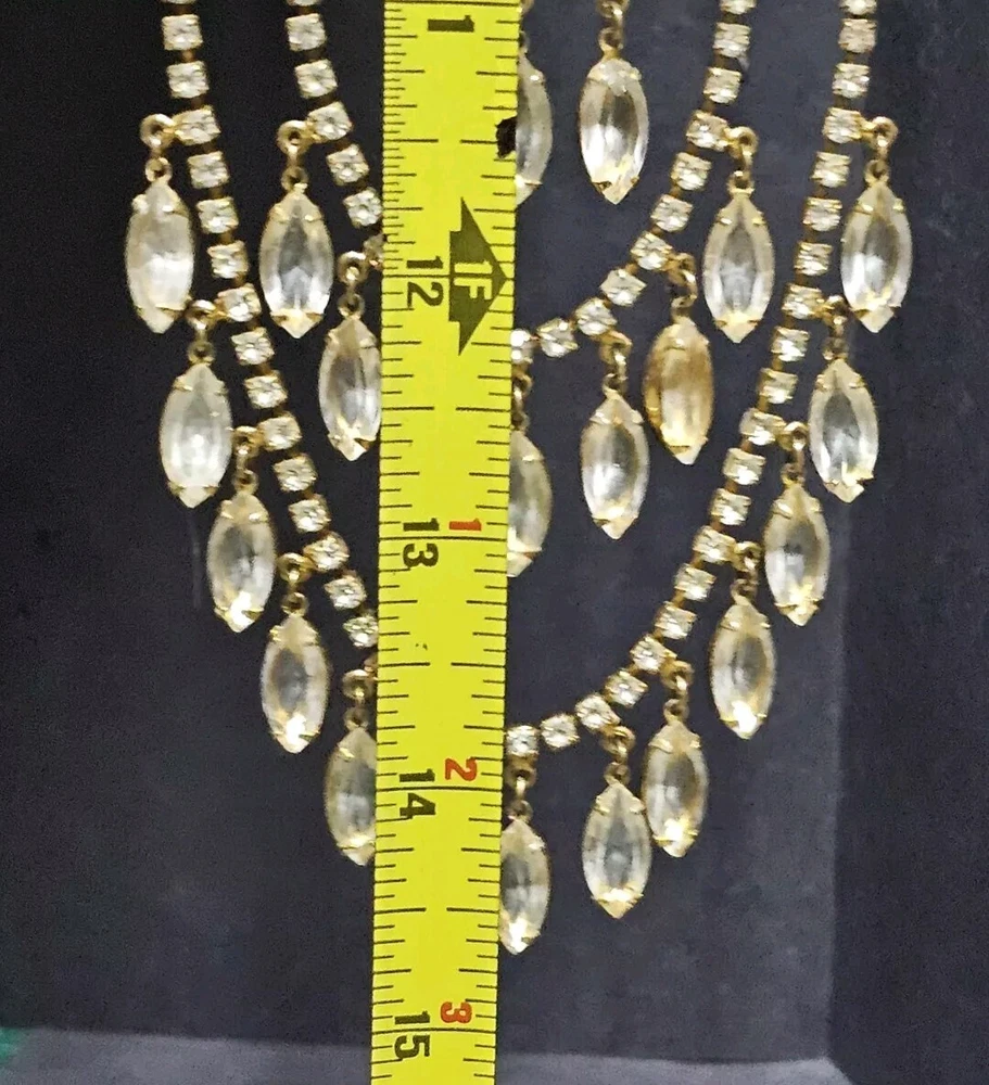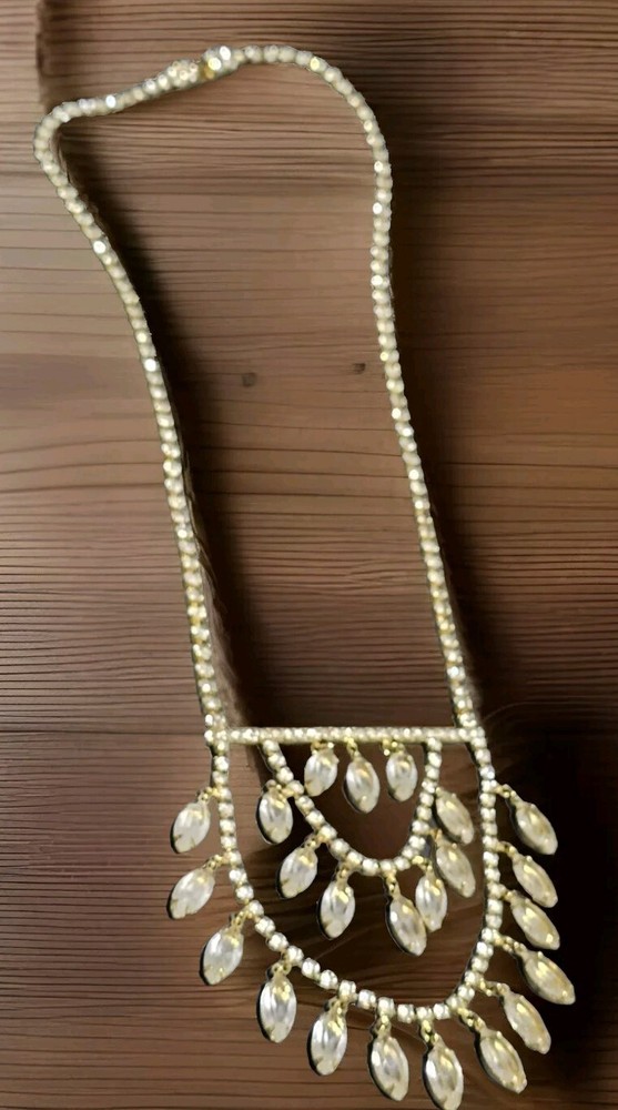This stunning necklace is perfect for any occasion. The clear faceted glass crystal rhinestones are beautifully bezel set, and the necklace has a spring push box latch. This stunning necklace was high-end runway design, which is perfect for a choker or a chain, and the necklace is 20 nches in length. If you have any questions, please feel free to contact me on eBay messenger! Very motivated seller and will accept any respectable counter offer sent in my direction! Thank you so much for reading this post from Foxy Stang Upcycler Store! 🦊Have A Wonderful Foxy Stang Day!!!!🦊