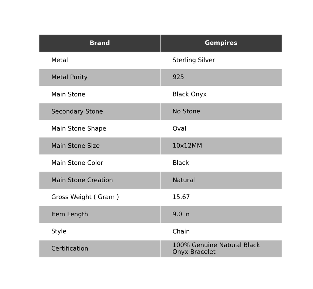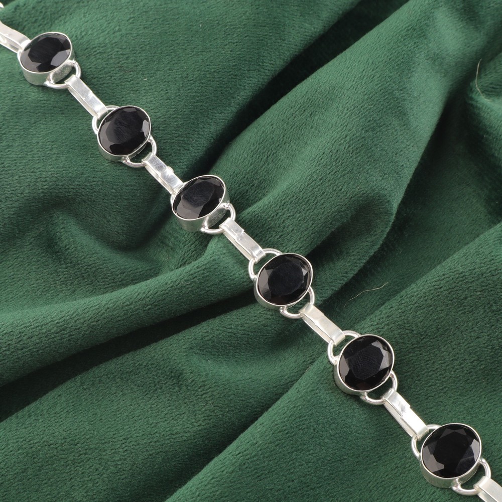 Welcome To Our Shop Gempires ------------------------------------------- Beautifully adorned with Black Onyx and handmade vintage design, this Bracelet will definitely grab attention. Pair it with any of your regular or special attire and let everyone appraise your sense of style. Faceted Root Chakra Black Onyx Stone 925 Silver Bezel Chain Valentines Bracelet Check My Other Bracelet Listings : Click Here SKU:- RB-6-5 Metal:- Sterling Silver Metal Purity:- 925 Gemstone:- Black Onyx Gemstone Color:- Black Gemstone Shape :- Oval Gemstone Creation :- Natural Stone Setting :- Bezel Bracelet Length:- 9 Inches Bracelet Width:- Inches ___________________________________________________________________ Shipping Handling - Free Standard Shipping all over the world Handling Time - 2 to 5 BUSINESS Days Delivery Time - 7 to 20 Days ( Various on destination ) _________________________________________________________________ Returns - 1.We provide a 100% Money Back Guarantee, excluding shipping costs, within 30 days from the date of item receipt. 2.The item must not be altered or damaged in any way shape or form. 3.Upon receipt of the aforementioned items, your payment will be promptly refunded. 4.Please be so kind as to contact us via email in order to acquire comprehensive return instructions before proceeding with the return of the merchandise. 5.Kindly be advised to allocate a maximum period of 1 business day for the processing of all returns, in order for the appropriate credit to be applied. 6.Sizing does not affect the return policy. _________________________________________________________________ FAQ's - Q.1 ARE THE ITEMS YOU ARE SELLING BRAND NEW? We exclusively offer brand-new products, refraining from the sale of pre-owned jewelry. Our entire jewelry collection is composed of 100% natural, conflict-free pieces. We do not engage in the trade of imitation or lab-grown gemstones and diamonds. Q.2 WHAT ARE YOUR BUSINESS HOURS? we operate 24x7 as we have a dedicated team who works in different shifts to deliver the services to our valuable customers. ________________________________________________________________ Gempires is committed to delivering customers an unparalleled experience through the provision of exquisite handmade jewelry, meticulously crafted to uphold the most exacting standards of quality. Our operations encompass dual roles as both discerning connoisseurs and skilled artisans within the realm of jewelry making. We proudly hold an extensive proficiency in the fine art of enhancing gemstones, allowing us to harmonize them seamlessly with diverse aesthetic inclinations. We are delighted to extend to you the privilege of curating your very own jewelry collection. This collection will be graced by the presence of genuine and splendid natural gemstones, each possessing an innate authenticity and beauty that is truly unparalleled. **** STAY BLESSED ALWAYS*****