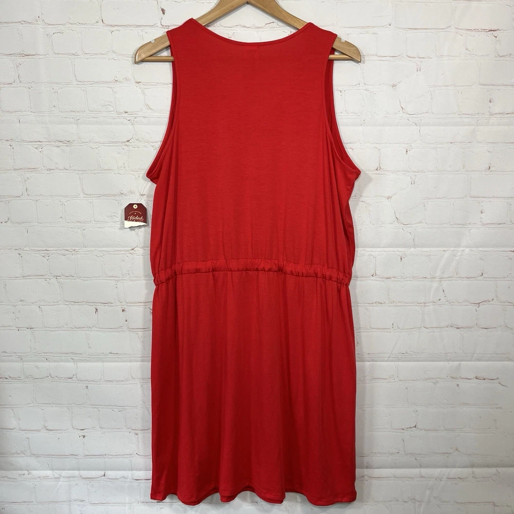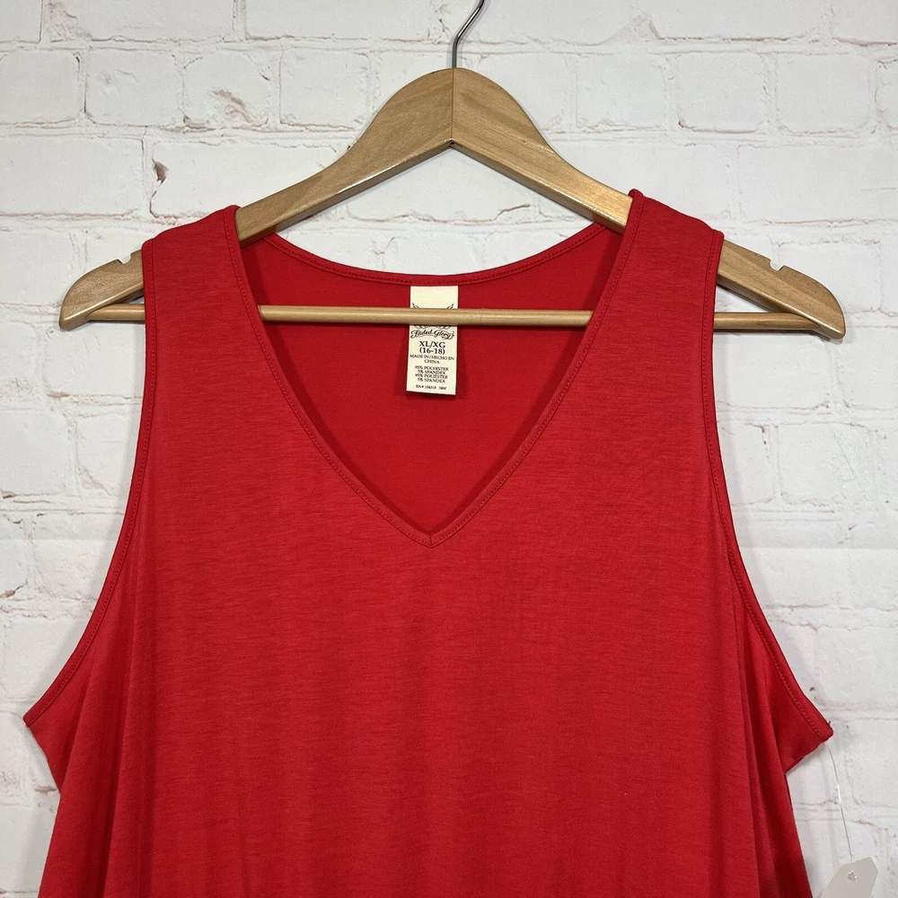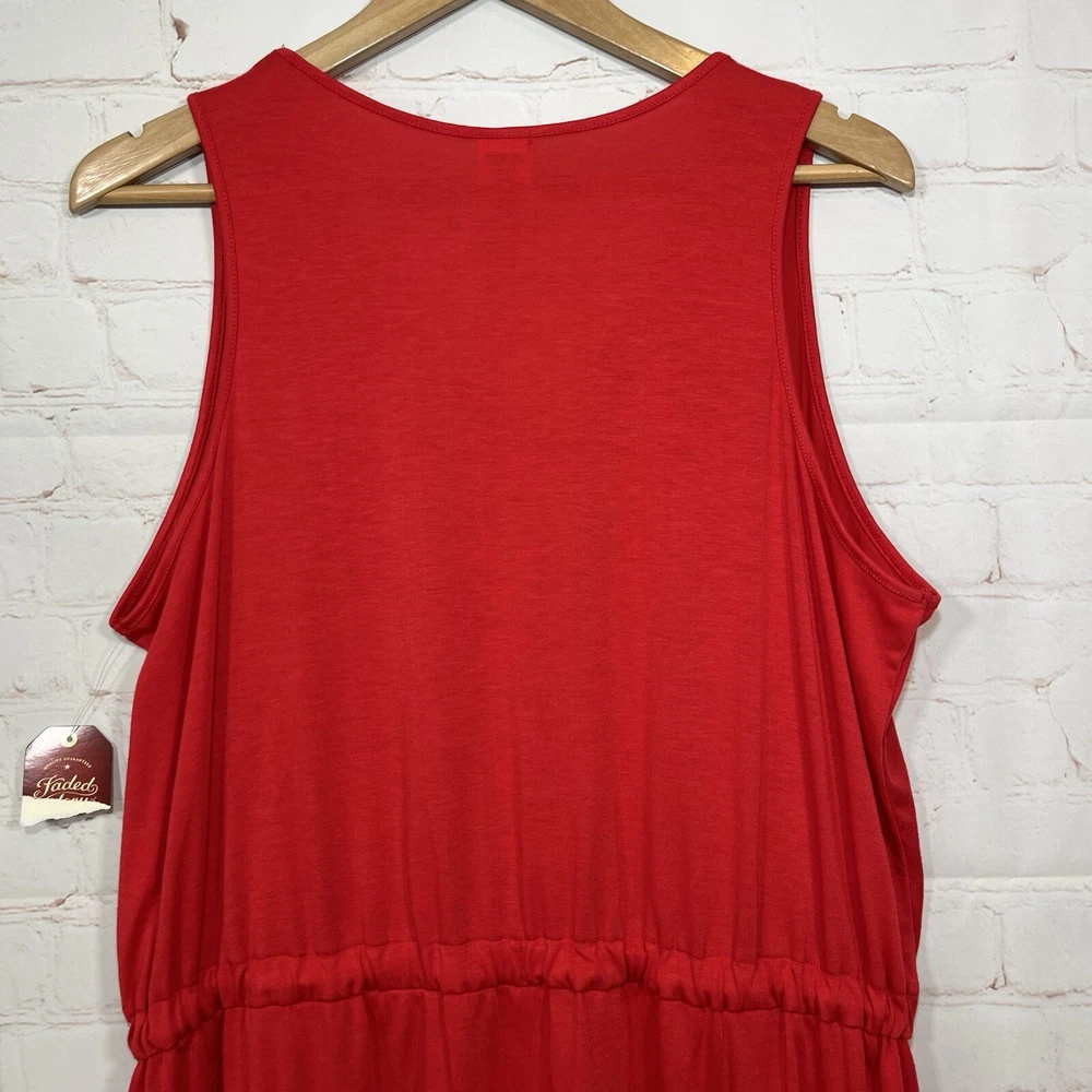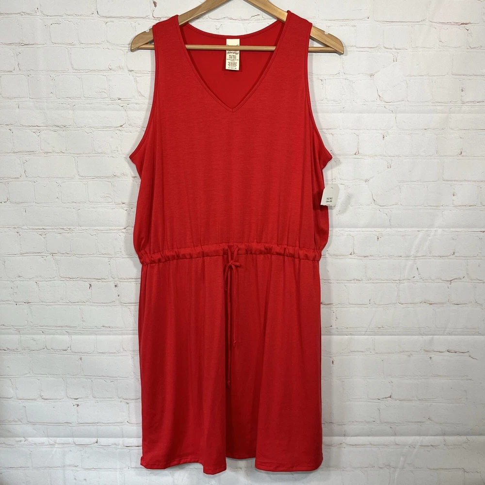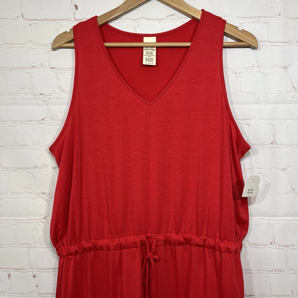 Faded Glory Dress Womens Size 16-18 Red Midi Stretch V Neck New See measurements for accurate fit Shoulder to hem 36 inches Pit to Pit 21 inches All measurements are done flat lay