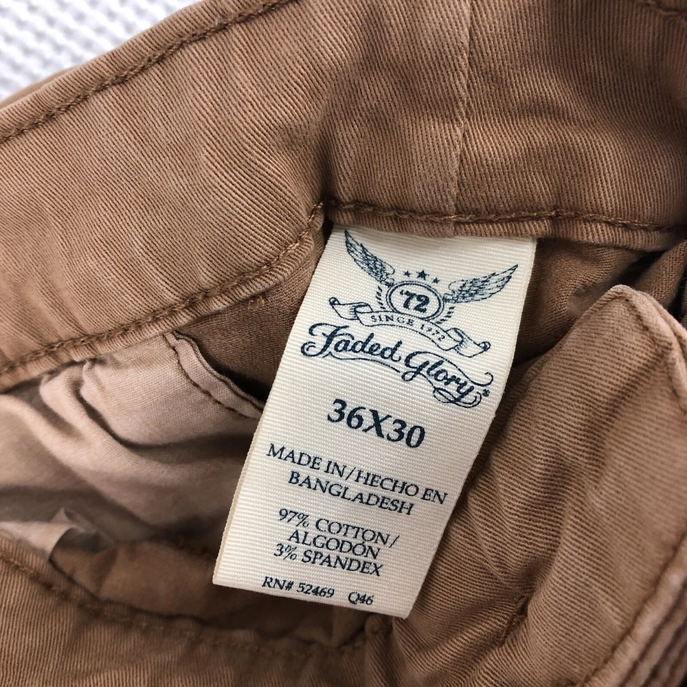 Elevate your preppy style with these Faded Glory chino pants. The brown cotton blend material and straight leg fit provide both comfort and style, while the flat front and regular fit create a flattering look. Perfect for a day on campus or a casual outing, these pants feature a 36 inch waist size and 30 inch inseam. The stretch material adds an extra touch of comfort, making them ideal for any occasion.