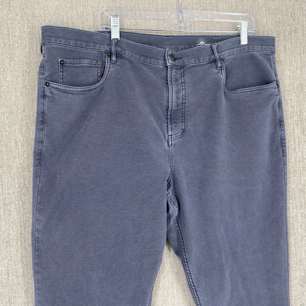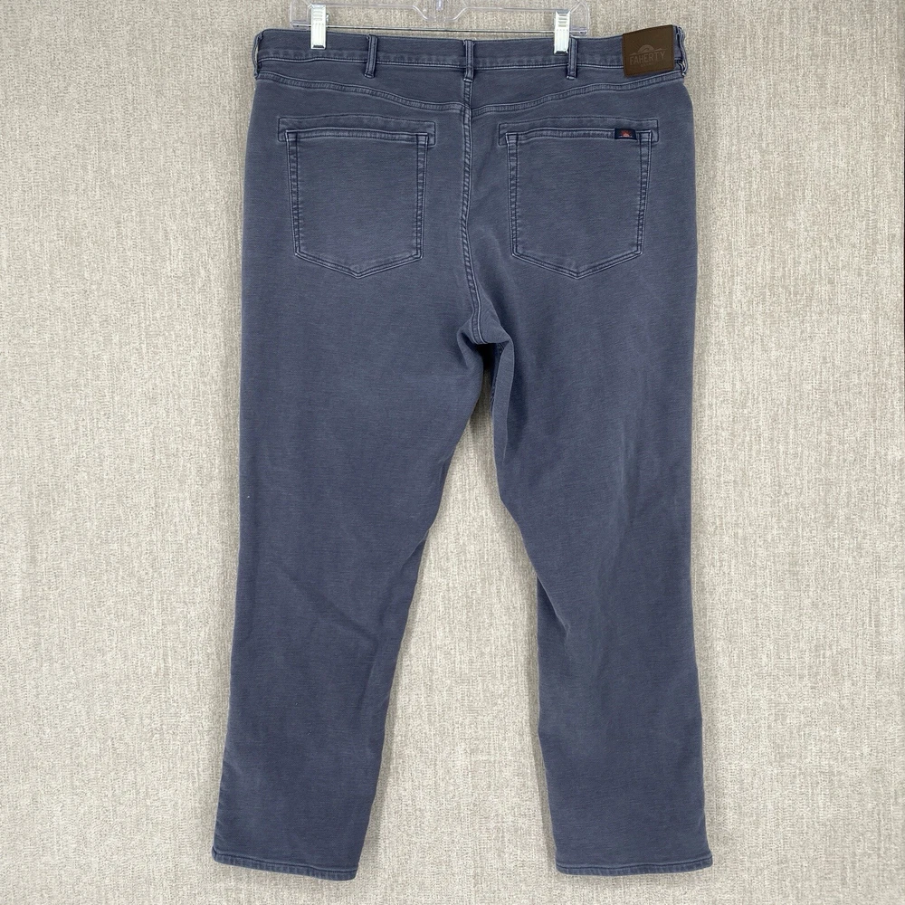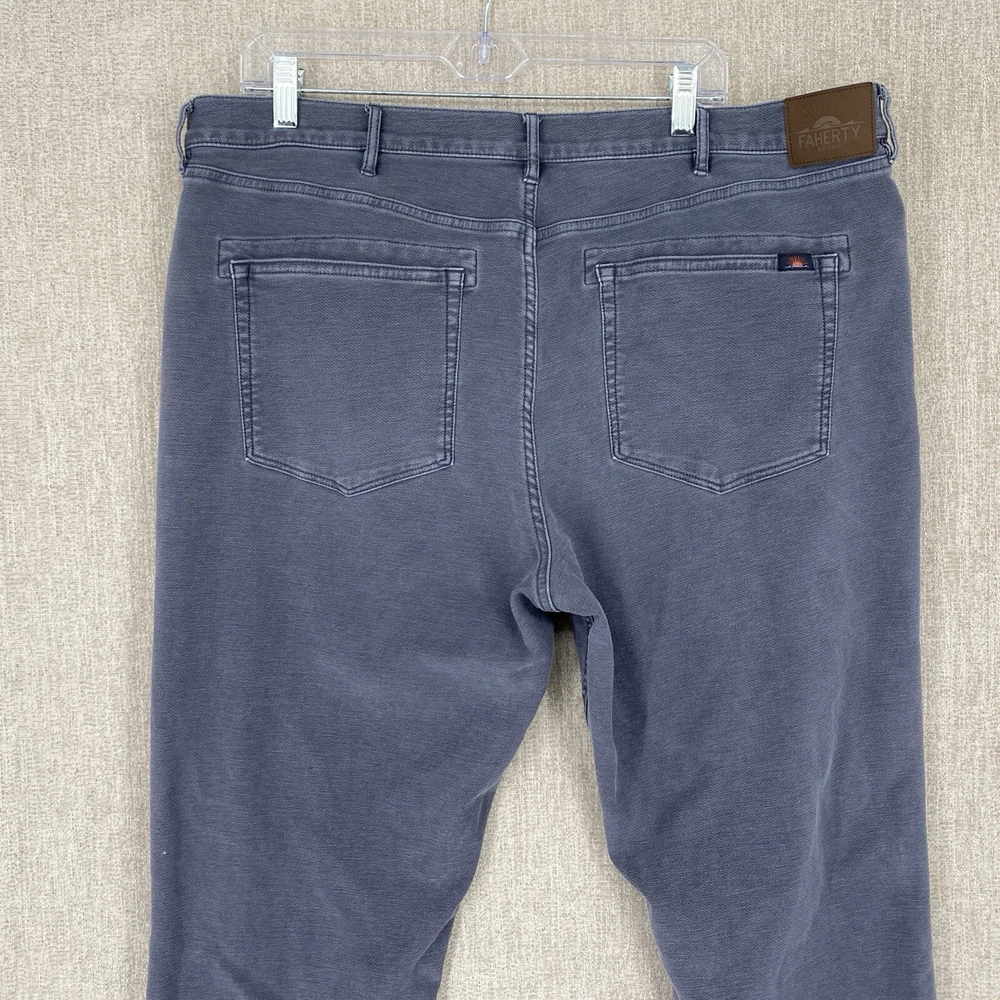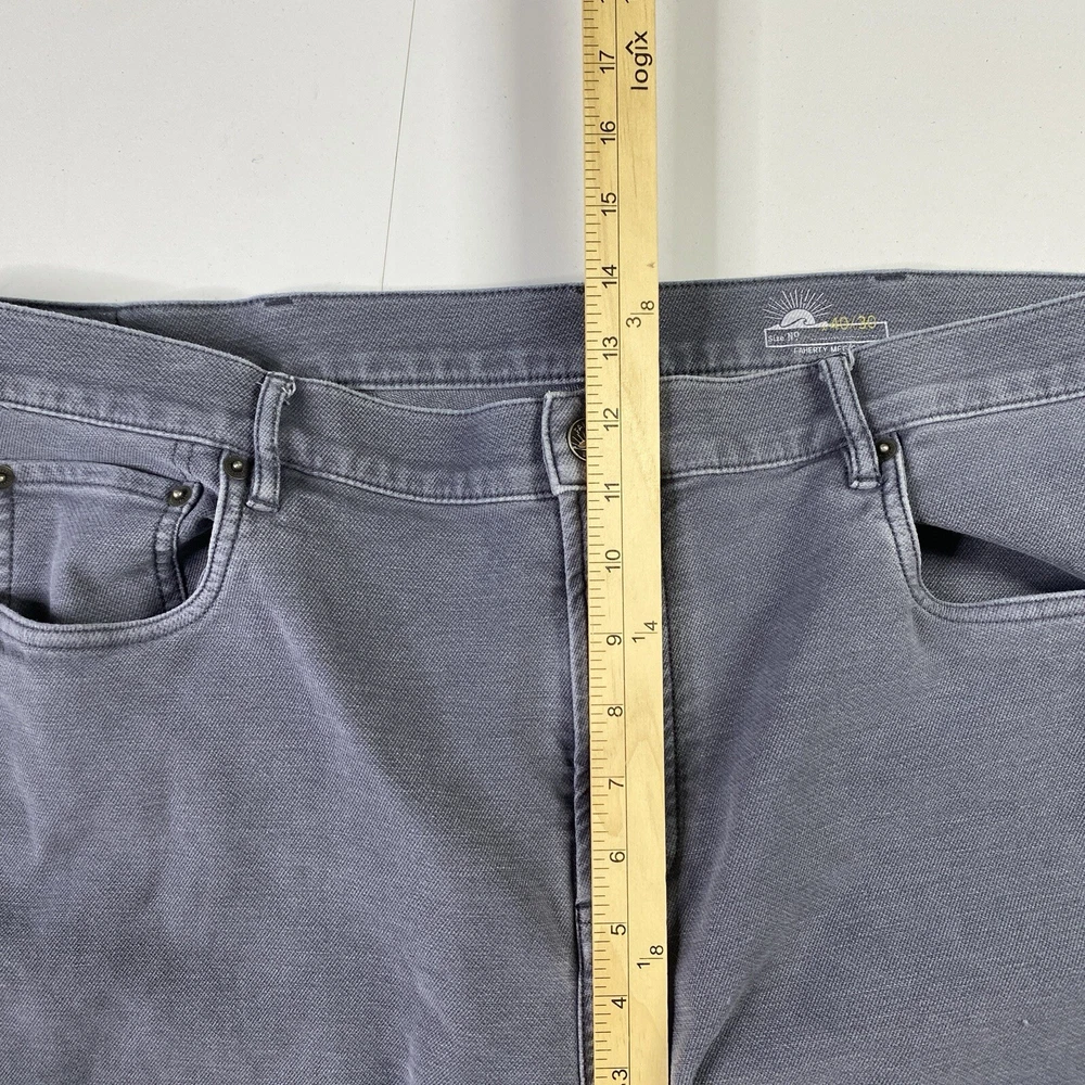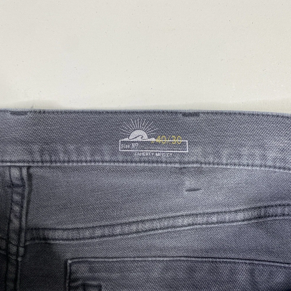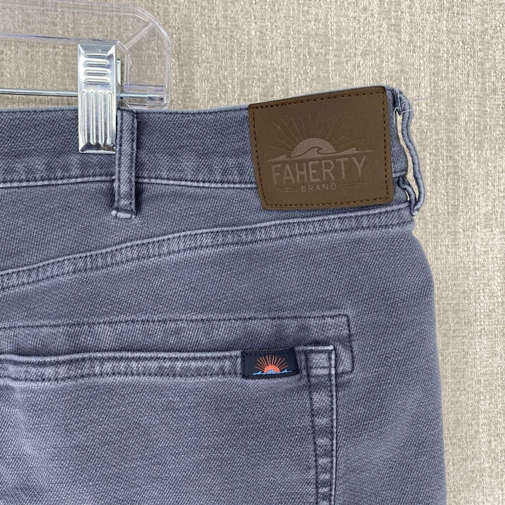 Front Type: Flat Front Waist Size: 40 in Accents: Logo Theme: Preppy, Modern Season: Fall, Spring, Summer, Winter Type: Pants Rise: Mid (10-12 in) Department: Men Fit: Regular Material: Cotton Leg Style: Straight Inseam: 30 in Fabric Type: Denim Garment Care: Machine Washable Size: 40 Brand: Faherty Style: Chino Occasion: Casual, Travel Closure: Button, Zip Pocket Type: 5-Pocket Design Pattern: Solid Color: Gray Size Type: Regular Vintage: No Features: Stretch