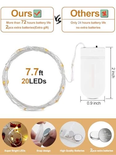 Return Policy Fast Delivery Trusted seller Green Fairy Lights Battery Operated,6-Pack LED String Lights Waterproof Silver Wire 7ft 20 LED Light for St. Patrick's Day,DIY Wedding Party Bedroom Patio Christmas Product Description VERSATILE STRING LIGHTS: Our battery-operated fairy lights create a warm and inviting atmosp for weddings, parties, and DIY craft projects, including mason jars, vases, and table settings.Our mini fairy lights are powered by CR2032 batteries and can last up to 72 hours,it’s belongs lasting-long lights, If the light off ,change the battary it can be Bright as usual, making them perfect for outdoor or indoor use. DAZZLING LED FAIRY LIGHTS: Featuring tiny LED lights, our led wire lights are an elegant addition to any event or décor. The LED bulbs produce no heat and are environmentally friendly. The silver wire starry moon lights are low power and insulates heat, remain safe to the touch. No glare, the soft warm lights in order to protect your eyes WATERPROOF MINI BATTERY LIGHTS: The fairy moon string lights is IP65 waterproof and can be used indoor and outdoor without any worry of moisture or weather damage or short circuit. Only the battery string lights is waterproof, the battery pack is not waterproof WIDELY USED SMALL LIGHTS: Flexible and thin but sturdily built, the fairy lights string can be easily bent, 360 degrees sparkle with beautiful effect, perfect to use as wedding centerpiece, or decorate party,Halloween,Thanksgiving,Christmas, Happy New Year,Easter,Valentine's Day, Mother's Day, Father's Day decorations shop, restaurant and kid's room etc 100% WARRANTY: We promise to refund unconditionally within 30 days. If t is any quality problem, please contact us. We will deal with it within 24 hours Shipping Returns Payment Shipping Shipping is FREE to all addresses other than APO/PO boxes in the lower 48 states. All our stock ships from US-based warehouses. Shipped via USPS or UPS (depending on location and package weight) Unless stated otherwise, all orders will ship within 24-72 hours of your payment being processed. Check our feedback to see the great reviews of FAST shipping we offer. Returns Seller does not accept returns Payment We currently accept payment via eBay managed payments only. Once payment is cleared, we will dispatch your shipment within 1-3 business days. Please refer to the "Shipping" tab for more information regarding shipping speed to your destination.