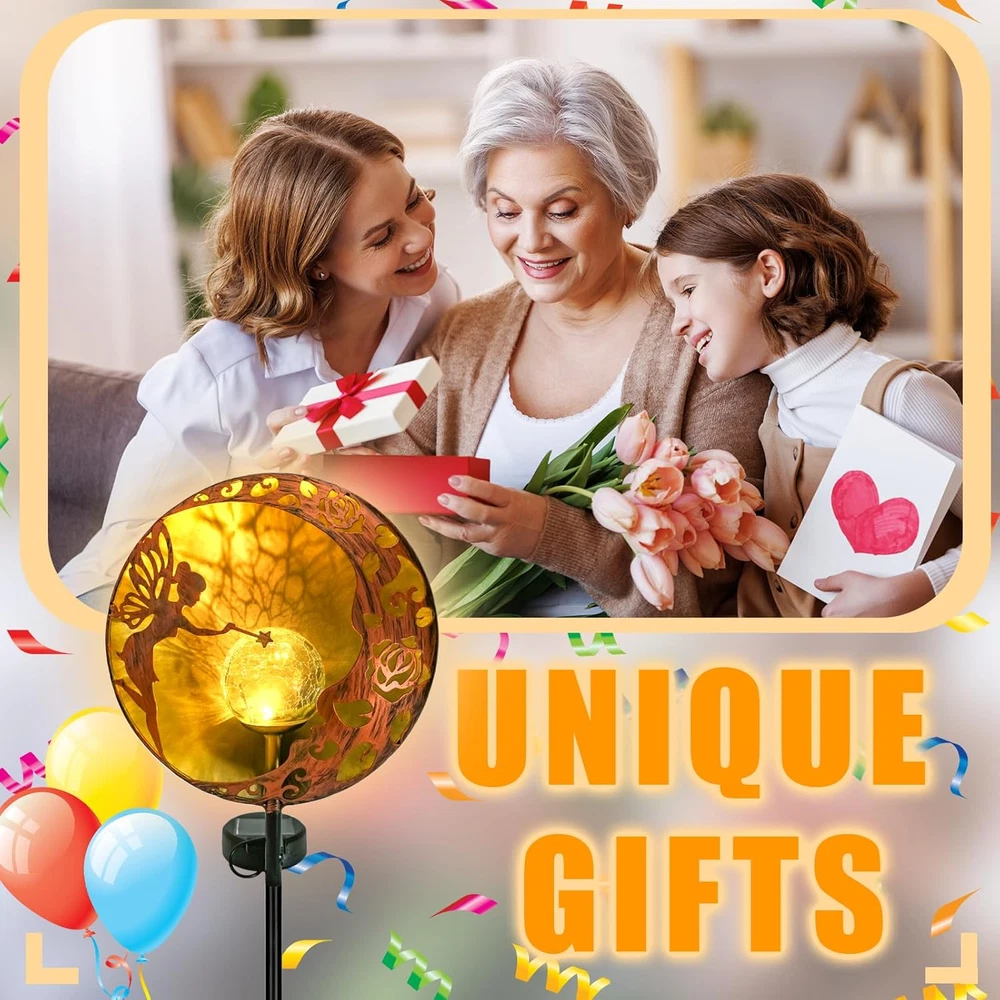 FAIRY DECOR:Profinella's fairy solar light are designed specifically to enhance your courtyard decor. At night, the fairy’s wand points toward a glowing crackle glass ball, and the warm light, after reflecting off the high-gloss golden paint inside, appears even brighter.This warm visual effect transforms your garden into a captivating scene UNIQUE GIFTS:Profinella's fairy solar garden light is an ideal gardening gift for any special occasion. Whether it's Mother's Day, a birthday, or another meaningful day, it makes a perfect present for moms, grandmas, and women. Suitable for anniversaries, housewarmings, Thanksgiving, and Christmas, this gift is sure to convey your affection beautifully MULTIPLE USES:This enchanting fairy solar light is perfect for enhancing various outdoor spaces. It can create a welcoming glow on your patio or porch, add a touch of magic to your backyard or yard, and provide gentle, waterproof illumination by the pool. Along pathways and walkways EFFICIENT SOLAR PANEL:The product features a solar panel, eliminating the need for additional wiring and making installation simple and quick. The solar panel automatically absorbs sunlight during the day, converting it into stored energy. At night, it automatically switches to lighting mode and shines for over 8 hours WEATHER-RESISTANT:The fairy light stands at 39.5 inches tall. Its high-quality metal construction makes it waterproof, rustproof, heat-resistant, and cold-resistant, thus enabling it to withstand various outdoor conditions. The exterior is finished with an antique metallic paint, giving it a more textured appearance, while the interior features a high-gloss gold paint to enhance light reflection Product Description The video showcases the product in use. The video guides you through product setup. The video compares multiple products. The video shows the product being unpacked. hero-video Merchant Video Explore More About Profinella Garden Solar Lights Add to Cart Add to Cart Add to Cart Add to Cart Add to Cart Customer Reviews 4.3 out of 5 stars 35 4.4 out of 5 stars 35 4.4 out of 5 stars 35 4.4 out of 5 stars 35 4.4 out of 5 stars 35 4.4 out of 5 stars 17 4.4 out of 5 stars 17 Price $25.99 $ 25 . 99 $29.99 $ 29 . 99 $35.99 $ 35 . 99 $29.99 $ 29 . 99 — $24.99 $ 24 . 99 — Solar Power ✔ ✔ ✔ ✔ ✔ ✔ ✔ Waterproof ✔ ✔ ✔ ✔ ✔ ✔ ✔ Material Metal+glass Metal Metal Metal Metal Metal Metal Pattern Fairy Hummingbird Butterfly Bee Dragonfly Hummingbird Butterfly Lighting Hours 8-10 Hours 8-10 Hours 8-10 Hours 8-10 Hours 8-10 Hours 8-10 Hours 8-10 Hours