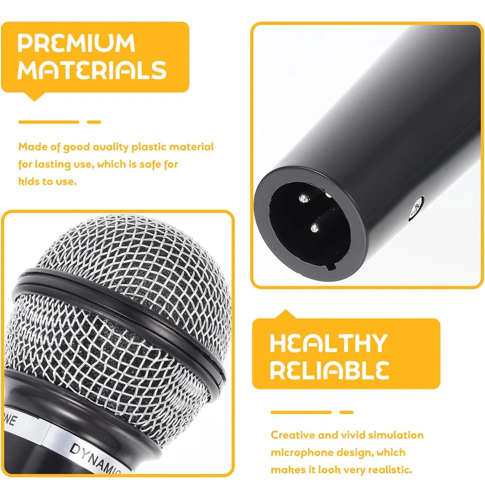 Safety Guaranteed: This prop microphone provides a comfortable grip with its smooth texture and realistic design. Made from high-quality ABS material, it ensures safety during use and lasts for a long time without damage or deformation. Enjoy a realistic experience without sacrificing comfort. Great Design: This prop microphone looks like a real microphone, making it perfect for pretend play and creative games, it's the perfect size and weight for easy portability and more creative possibilities. Performance Boosting: Drive your kid's success on stage with this interactive and fun microphone toy. It promotes creativity, confidence and enhances playtime, stimulating an interest in performance arts. Lightweight and portable, perfect for children who love to sing and act. Widely Applicable: Elevate your events with this versatile microphone prop that complements different brackets, sleeves, and themes. From mock speeches to karaoke cosplay, let this mic enhance your fun and aesthetics in all occasions. Amazing Gift: Inspire your child's inner rockstar and let their imagination run wild with this prop microphone that looks and feels real. Makes a perfect gift for any occasion like birthdays, Christmas, and Children's Day. Give your kids the gift of entertainment with this fake microphone. The Pretend Microphone is the perfect gift for kids this Christmas! Durable yet smooth to the touch, this pretend microphone is easy to carry about and suitable for education. Specification: Product name: Prop Microphone Product material: ABS Product weight: (approx.)52 grams Product size: (approx.)5*5*16.5cm/1.97*1.97*6.5 inches Packing List: Prop Microphone * 1 Note: Due to different lighting and screen settings, item colors may vary slightly from the pictures. Due to the difference in manual measurement, please allow a 1-2cm difference in size.