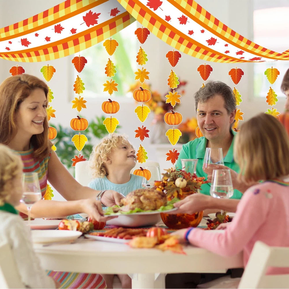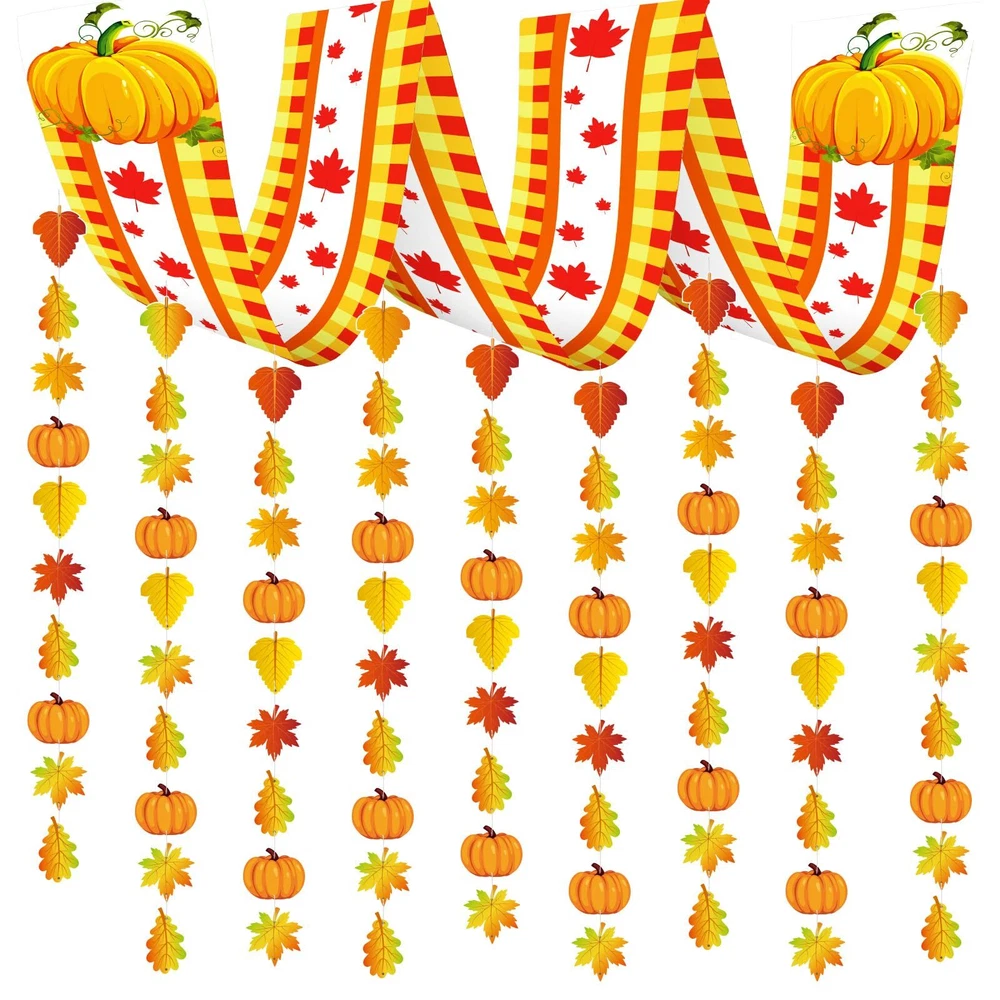 Package Includes: 1 fall ceiling banner 18 pumpkin ornaments 90 leaves ornaments in 3 different shapes 300 x 9cm Plastic Hanging Strings 30 x Silver Copper Pins Versatile Applications: The hanging autumn ceiling decorations can be applied to decorate the doorway, courtyard, ceiling, wall, tree, glass window, tent, furniture, door, fireplace, mantel, reception and so on, adding more Autumn, Thanksgiving, Halloween festive atmosphere. Appropriate Size: The fall ceiling decorations banner is about 35 x 270 cm/ 13.7 x 106 inches; Such a large size is very suitable for hanging on the ceiling of the classroom or living room,indoor or outdoor. How to use: 1.Thread the pin through the cardstock. 2.Put the pin through the banner respectively. 3.Pass the rope through the hole in the pin. 4.Hang it on the ceiling or on the wall. Fall Party Decorations: Enhance your gathering with these enchanting autumn-themed ceiling decorations that exude a cozy fall ambiance. The fall decorations set comprises an autumnal banner, 18 pumpkin ornaments, 90 leaf ornaments in three different shapes, and complementary accessories to elevate your party ambiance. Autumn Atmosphere: These autumn party decorations will complement your seasonal festivities and infuse a warm atmosphere. This autumnal ceiling decor is sure to be a standout feature at your event. Adorn your autumn party with these vibrant supplies to create lasting memories of your harvest-themed celebration. Versatile Usage: These fall ceiling decorations are versatile and ideal for various settings. Whether for autumn parties, harvest gatherings,Thanksgiving party, Halloween party, fall-themed soirees, woodland parties, or seasonal feasts, these autumnal ceiling decorations bring a distinct and lively touch to your event. High-Quality Materials: Made from premium polyester, these autumnal ceiling decorations are durable and resistant to wear. The robust paperboard pumpkin and leaves ornaments are dependable and can be reused for future fall festivities. Easy Assembly:The fall ceiling banner is designed with holes at each of the 4 corners and fitted with a plastic rope, and you can use the safety pins to connect it with colorful garlands, simple and convenient, finally you will get a beautiful fall decoration.