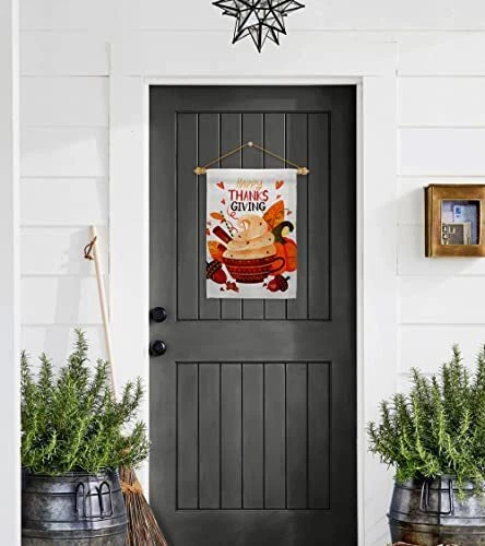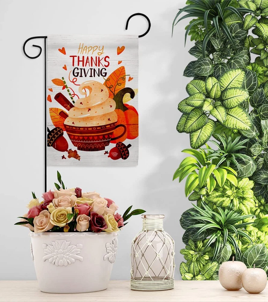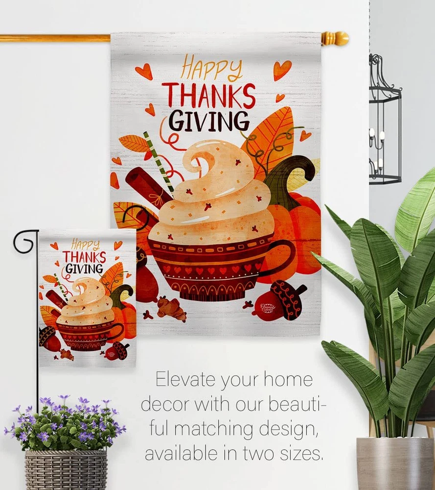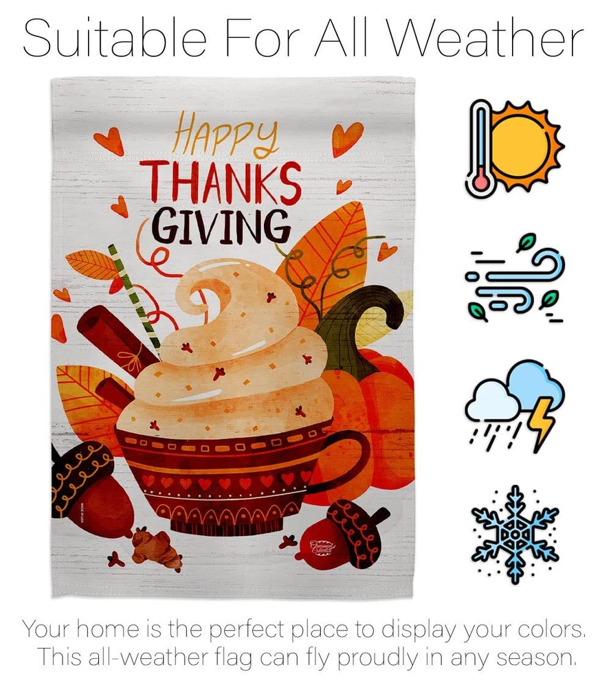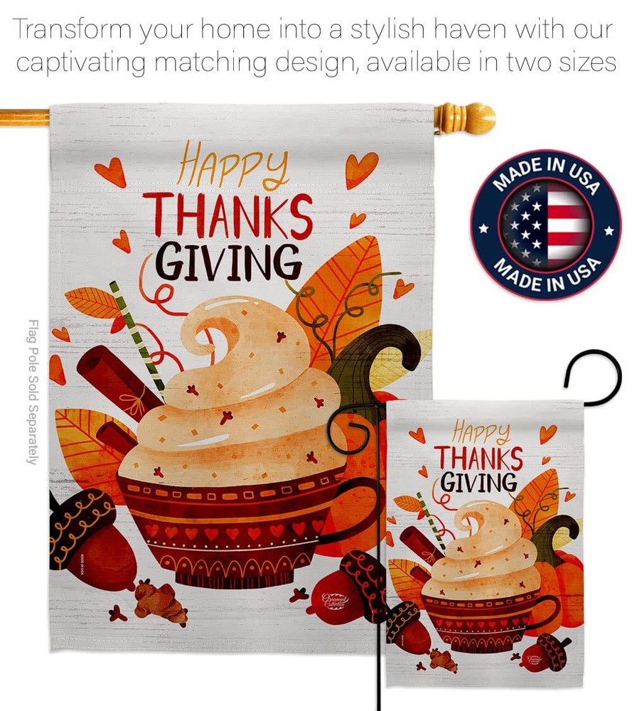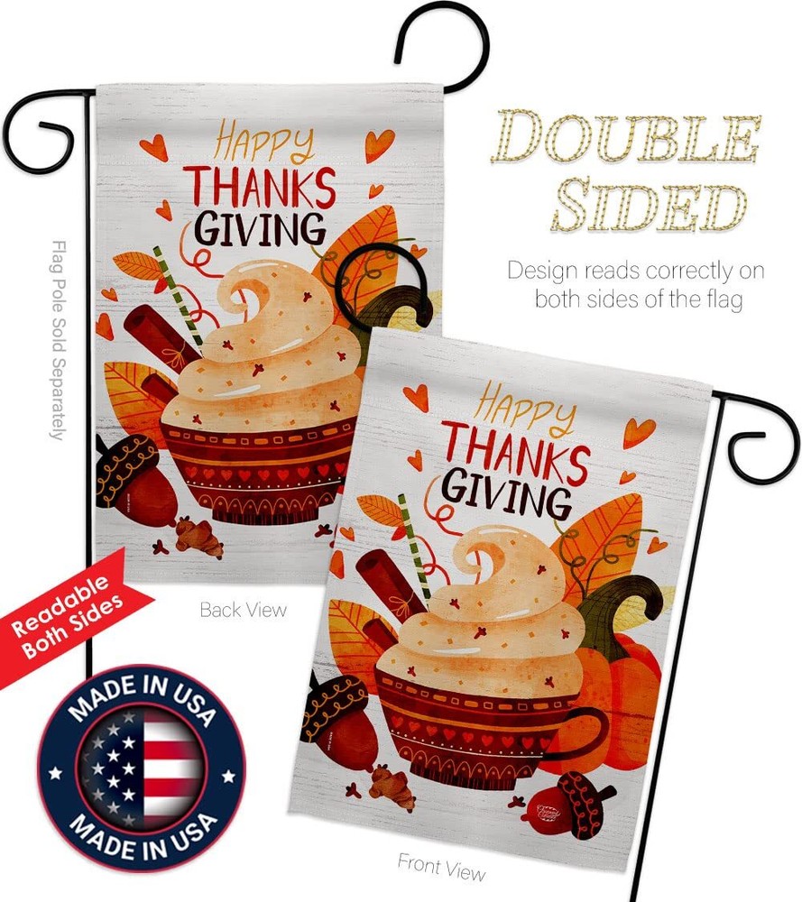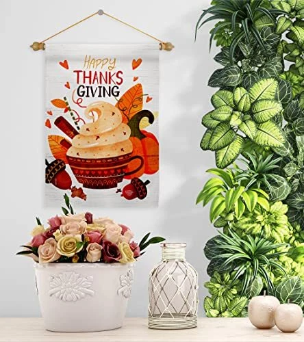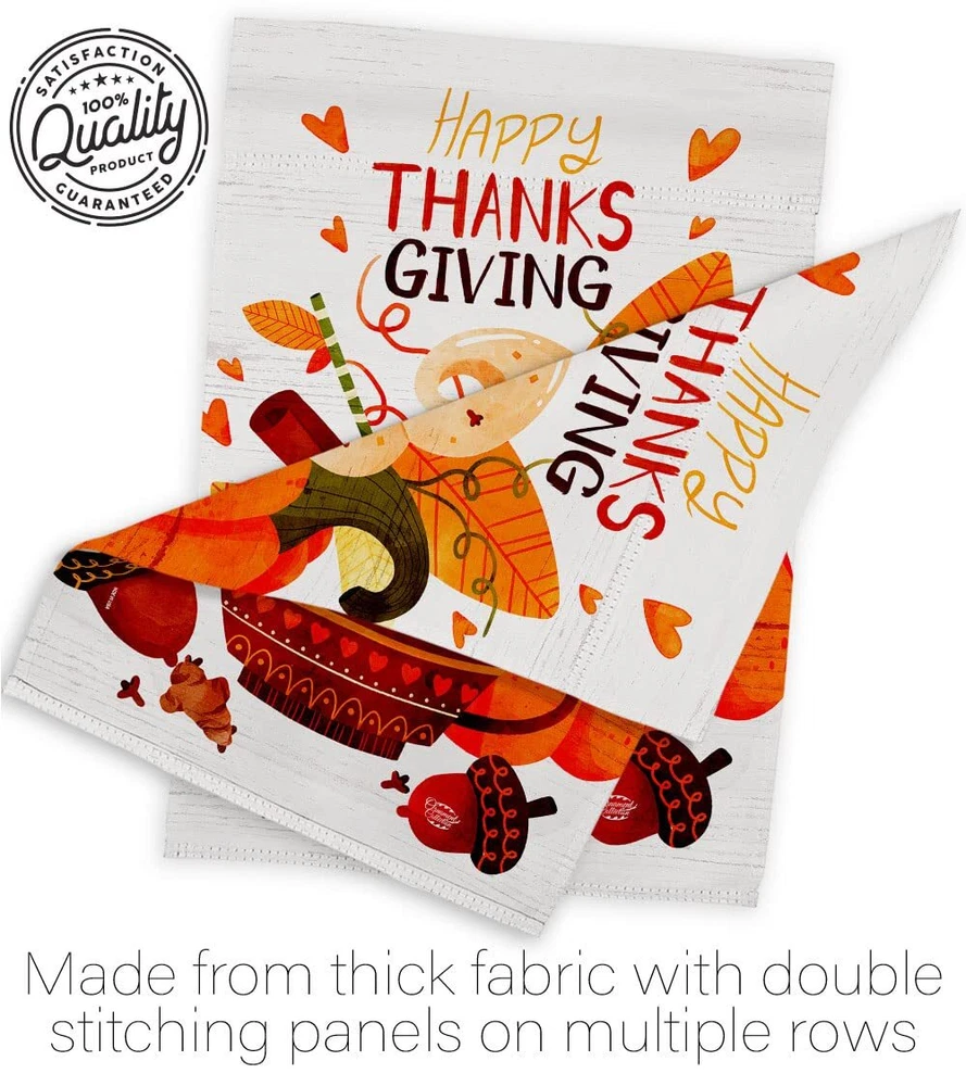 Fall Thanksgiving Garden Flag Set with Wood Dowel - Turkey Pumpkins Gobbler Decor