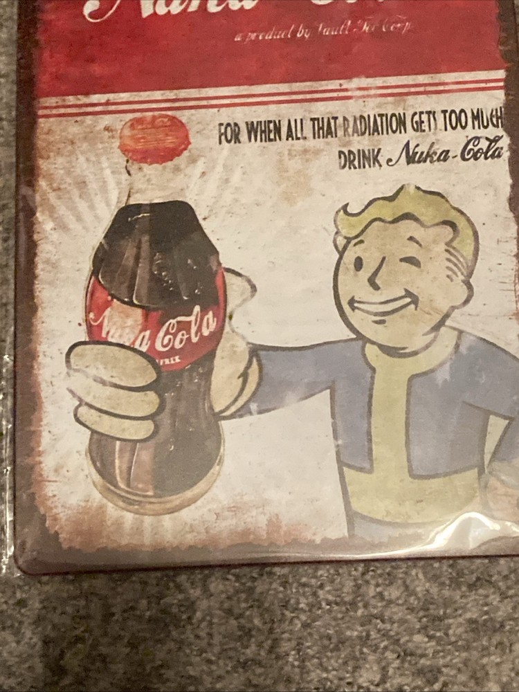 The Fallout Nuka Cola Cosplay Prop Metal Sign Poster is a stylish and unique piece of home décor. Made of durable metal with a metallic finish, this 12”x 8” sign features a retro soda theme that adds a fun and nostalgic touch to any space. Perfect for fans of the popular video game franchise or collectors of vintage-inspired items, this sign is sure to make a statement in any room.