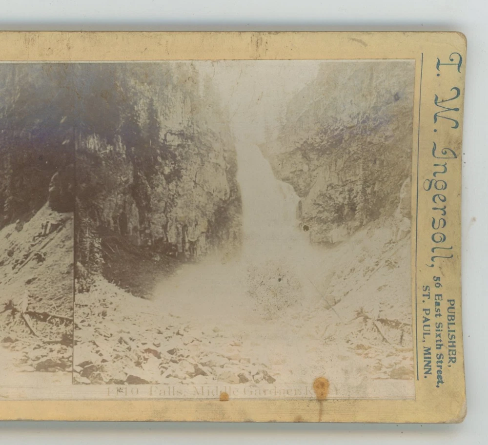 Falls Middle Gardner River Yellowstone Park Ingersoll Stereoview Falls Middle Gardner River Yellowstone Park Ingersoll Stereoview Antique Real Photo Stereoview Condition - Please refer to photos to assess, curved mounts may appear with a rainbow affect on top and bottom of photos Please See our other views. We do combine shipping. For our International bidders: We offer Free overseas shipping with the purchase of 5 or more views Keyword Search: Stereo View Stereoscope Stereograph Stereoscopio Listing and template services provided by inkFrog