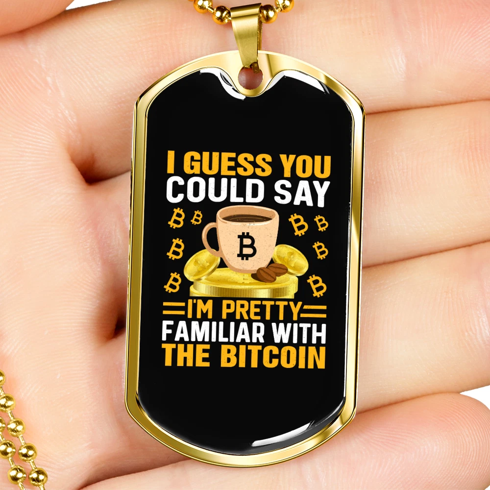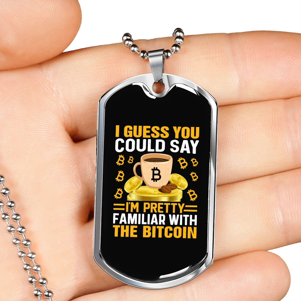 Type: Pendant Necklace Length: 24" Base Metal: Stainless Steel Metal: Surgical Steel Pendant/Locket Type: Dog Tag Material: Glass Country/Region of Manufacture: United States Personalize: Yes Chain Type: Ball Brand: Express Your Love Gifts MPN: 6943001444440 Color: Multi Color Main Stone: None Closure: Lobster Clasp Customized: Yes Features: Adjustable Pendant Shape: Dog Tag Theme: Bitcoin, Crypto, Blockchain