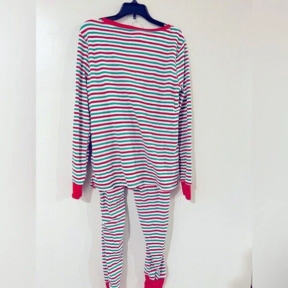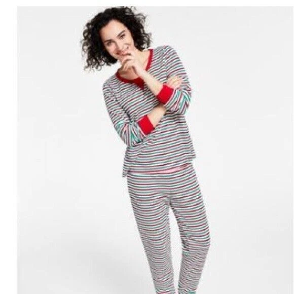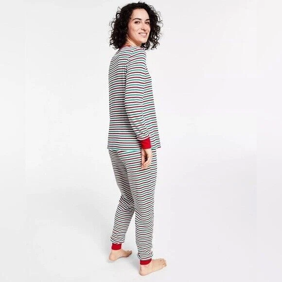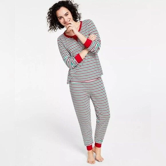 Product Details Get festive in this fun set from Family Pajamas, a super-soft top and matching bottoms in cozy waffle knit with vibrant stripes. Texture: Thermal Waffle fabric Top: hits at hip, waffle knit, contrast trim, scoop neckline, pullover styling, long sleeves Pants: hits at ankle: approx. inseam: 30", waffle knit, elastic waist Polyester/rayon Machine washable Imported Listing and template services provided by inkFrog