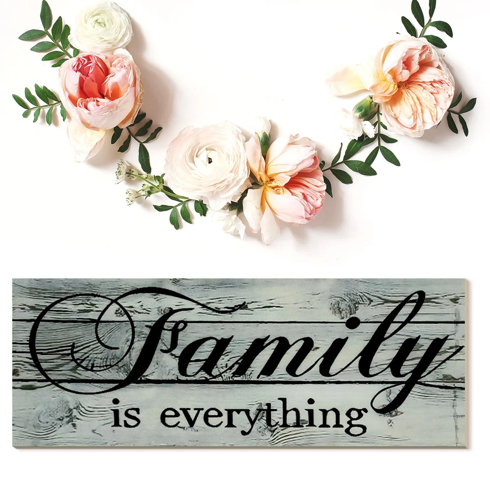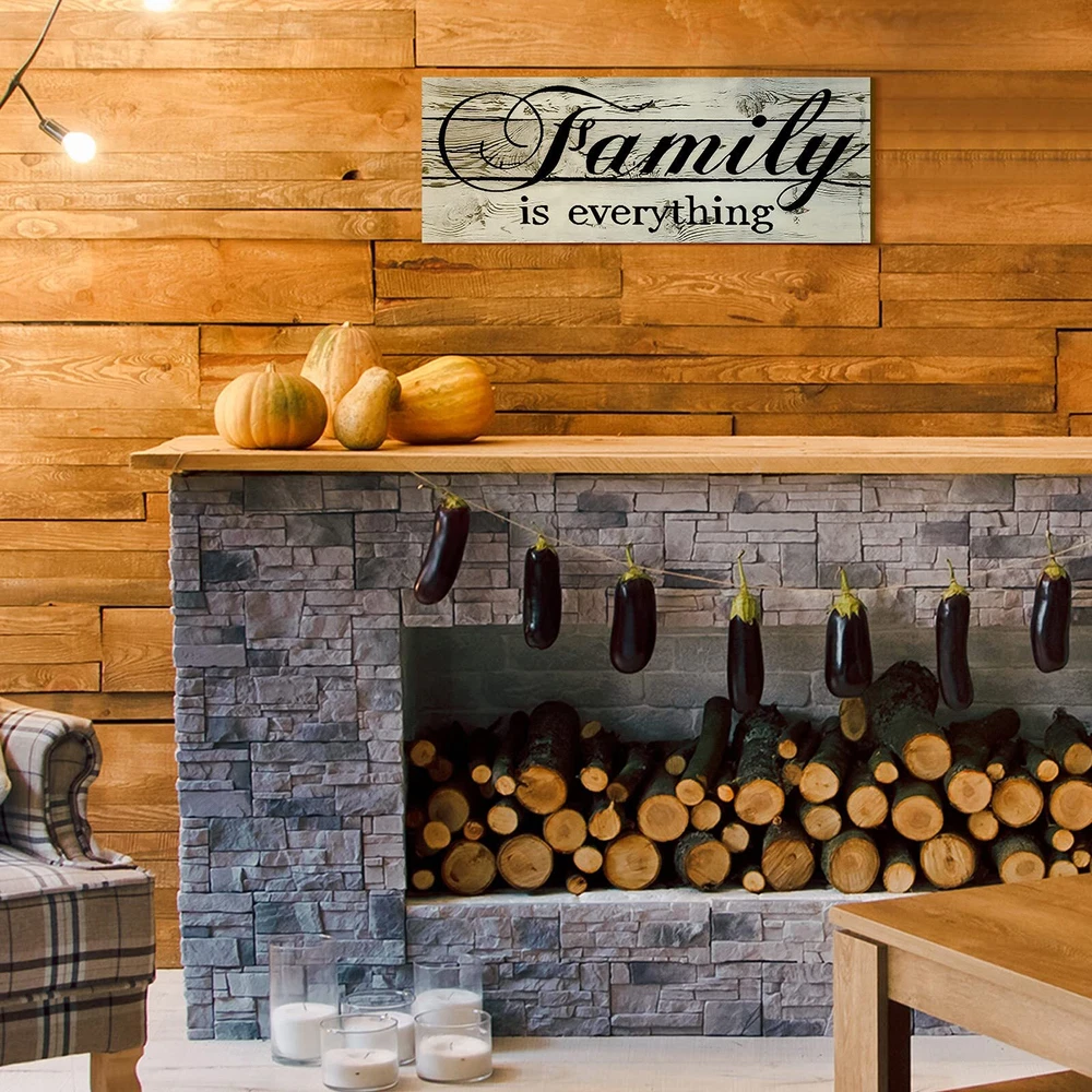 Features: Practical and useful: The retro design of family wooden sign is suitable for different decorative themes, such as rustic, farmhouse, woodland, bohemian, vintage, and hippie, as well as a thoughtful present for hostess, moms, friends, teachers on bridal showers, birthdays or Christmas. Nice home decorations: The wooden signs are three-dimensional, they will bring an attractive landscape to your living room, bedroom, gallery, walls, dining room, bathroom, office and so on. Specifications: Material: wood Size: approx. 13.5 inches in length, 4.68 inch in width Color: blue gray Package includes: 1 x Family wood decoration Note: Manual measurement, please allow little size errors. What you can get: you will receive 1 piece wood sign printed with the saying of family is everything, vintage home decor accents to bring farmhouse charm to any space, bringing you delightful mood Quality material: the family sign is made of quality wood, durable and safe to use, with sanded surface and wood texture, neat edge won't hurt your hands and body, convenient for you to complete home decoration Suitable dimension: wall hanging sign decor measures approx. 13.5 inches in length, 4.68 inch in width; It is lightweight that easy to be hung on wall or door Easy to use: the family sign have 2 metal hooks on the back, which to meet your hanging needs in various occasions, well match with any home decor style Widely applicable: farmhouse wall decor is suitable for indoor or outdoor use, such as, kitchen, bedroom, living room, hallway, porch, balcony garage and so on; You can hang it on the door, window, wall or fireplace, easily adding nice decoration effect