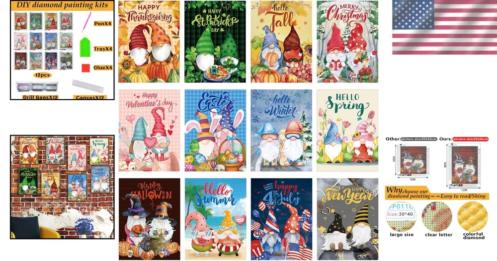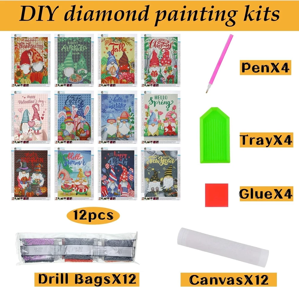 Family-Friendly 12 Piece Diamond Painting Kits - Gnomes for Every Celebration ‹ › ‹ › ‹ › ‹ › ‹ › ‹ › ‹ › ‹ › Family-Friendly 12 Piece Diamond Painting Kits - Gnomes for Every Celebration Unleash your creativity and make every holiday special with our exquisite collection of diamond painting kits. Perfect for artists of all ages, these kits feature charming gnomes designed to brighten your festive decorations. What's Included: 12 Unique Kits: Celebrate every occasion with themed designs for Valentine's Day, St. Patrick's Day, Easter, Halloween, Thanksgiving, Christmas, and more. Exclusive Packaging: Each kit comes in a beautifully upgraded packaging, with a dedicated diamond material package to ensure a delightful crafting experience. Complete Drilling Tools: 5D round diamond drill bit for stunning visual effects. 4 precision daub pens for easy diamond application. 4 wax pieces to facilitate seamless diamond picking. 4 diamond trays and an abundance of acrylic diamonds to create vibrant artwork. Simple and Enjoyable Process: Easy-to-follow instructions allow you to effortlessly paste diamonds onto the corresponding canvas codes with clarity. The thoughtful design ensures you can start creating immediately—no extra tools are needed! Durable and Reliable Materials: Canvas size: 30 x 40 cm (12 x 16 inches) made from high-quality materials. Fade-resistant, deformation-resistant fabric ensures that your creations last. Foster Bonds with Family: Diamond painting is not just a craft; it's a memorable experience to share with loved ones. Work collaboratively on these kits, enhancing communication and cooperation—build cherished memories while unleashing your artistic spirits! Why Choose Our Diamond Painting Kits? Whether you’re looking to indulge in a new hobby or create heartfelt decorations for your home, our Family-Friendly 12 Piece Diamond Painting Kits are the perfect choice. With everything you need included, the only thing left to do is to enjoy the journey of crafting and celebrate your creativity! Transform your space and create beautiful artwork that conveys warmth and joy. Perfect for gifting or keeping for yourself. Order your set today! Shipping Free & Fast Shipping - We offer free shipping to most of the USA with a normal delivery time of 3-7 days. However, due to the current situation, additional delivery time (up to 3 weeks) may be required for some items. Alternative Carriers - We may use alternative carriers (e.g. USPS, FedEx, UPS, etc.) to ensure your package arrives safely and on time. Due to the use of multiple carriers, we are unable to provide a tracking number automatically. Handling Time - Orders are processed and shipped within 1-2 business days of receiving cleared payment. Shipping Restrictions - Shipping to Alaska, Hawaii, Puerto Rico, Guam, and other US territories may incur shipping charges or delivery restrictions. Please contact us before ordering, or your order can be refunded/cancelled. State Restrictions - There may be restrictions based on your state of purchase. For example, certain items may not be shipped to California due to state regulations. Contact for Tracking Updates - If you require tracking updates or have any concerns about the delivery of your order, please feel free to contact us, and we will be happy to assist you. Return Please see our eBay Return Policy. Thank you. Payment We accept all major credit cards, PayPal, and Apple Pay for your convenience. Your payment information is secure and encrypted to ensure a safe and seamless transaction. Please complete your payment within 3 days of purchase to avoid any delays in shipping. Feedback Your feedback is extremely important to us. We strive to provide the best products and customer service possible. If you are satisfied with your purchase, please take a moment to leave us a positive review. If you have any concerns or issues with your order, please contact us before leaving negative feedback. We are committed to resolving any problems and ensuring your satisfaction. Contact Us If you have any questions or concerns, please feel free to reach out to our customer support team. You can contact us through the eBay messaging system. We are available Monday to Friday, 9:00 am to 5:00 pm EST, and we will do our best to respond to your inquiry within 24 hours. Thank you for supporting our small family business! UPC: Not Set Model: Not Set MPN: Not Set Unit Quantity: 12 Bundled Items: Canvas Features: 5D,Easy to Operate,Serviceable Material to Use,5D round diamond drill bit,Complete drilling tools,Clear marks on canvas,Enhance relationships Type: Diamond Painting Brand: Unbranded Theme: Family & Friends Format: Box Style: Sampler Country/Region of Manufacture: Not Set Unit Type: lb