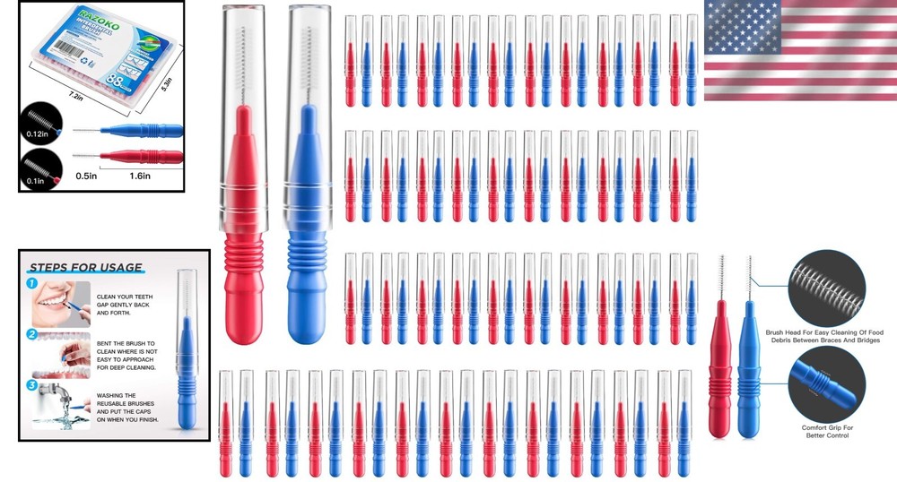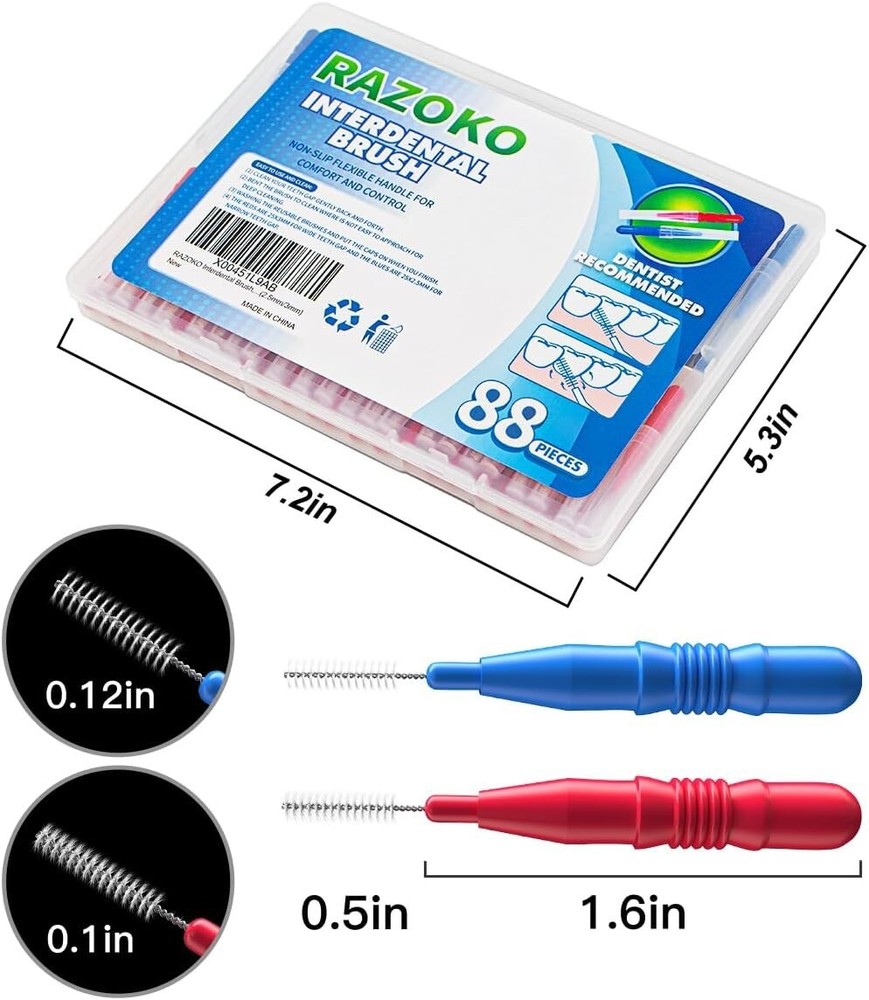 Family-Friendly Interdental Brush Set - 88ct with Soft Bristles & Easy Grip ‹ › ‹ › ‹ › ‹ › ‹ › ‹ › ‹ › ‹ › ‹ › Family-Friendly Interdental Brush Set - 88ct Elevate your oral hygiene routine with our specially designed interdental brush set. Featuring both blue and red interdental heads for different size teeth, this set ensures that every member of the family can maintain a vibrant smile. Features: Two sizes for versatile dental care: Blue head diameter: 2.5 mm (0.12 in) Red head diameter: 3 mm (0.12 in) Soft bristles to provide a gentle yet effective clean, safe for all ages. Constructed from food-grade plastic, nylon, and stainless steel wire for durability and safety. Comfort wire bends easily to facilitate better access to hard-to- areas. Effectively removes food debris and improves gum health by reaching between dental crowns. Highly recommended by dental hygienists for daily use. Benefits: Keeps your teeth white and gums healthy. Helps achieve comprehensive cleaning that standard toothbrushes cannot . Encourages a habit of daily interdental cleaning for better dental health. Reusable and easy to clean for sustainable oral care. Quality guarantee with dedicated customer support for your peace of mind. How to Use: 1. Insert the interdental brush gently into the gap between your teeth and clean back and forth. 2. Bend the brush to access hard-to- areas for an even deeper clean. 3. Easily clean the brushes after use, and replace the caps for storage. Packing Details: 72 x 3mm Red Floss sticks 72 x 2.5mm Blue Floss sticks Why Choose Our Interdental Brush Set? Choosing our interdental brush set means investing in a comprehensive oral care routine for you and your family. With soft bristles designed for safety, varying sizes for all dental needs, and an easy grip design, you can trust this set to keep your teeth and gums healthy, bright, and free of unwanted debris. Embrace healthier dental habits today and elevate your smile with confidence! Shipping Free & Fast Shipping - We offer free shipping to most of the USA with a normal delivery time of 3-7 days. However, due to the current situation, additional delivery time (up to 3 weeks) may be required for some items. Alternative Carriers - We may use alternative carriers (e.g. USPS, FedEx, UPS, etc.) to ensure your package arrives safely and on time. Due to the use of multiple carriers, we are unable to provide a tracking number automatically. Handling Time - Orders are processed and shipped within 1-2 business days of receiving cleared payment. Shipping Restrictions - Shipping to Alaska, Hawaii, Puerto Rico, Guam, and other US territories may incur shipping charges or delivery restrictions. Please contact us before ordering, or your order can be refunded/cancelled. State Restrictions - There may be restrictions based on your state of purchase. For example, certain items may not be shipped to California due to state regulations. Contact for Tracking Updates - If you require tracking updates or have any concerns about the delivery of your order, please feel free to contact us, and we will be happy to assist you. Return 30-Day Hassle-Free Returns - We want you to be completely satisfied with your purchase. If you are not, you can return the item within 30 days of receiving it for a full refund or exchange. Easy Return Process - To start a return, simply contact us and we will provide you with a prepaid return shipping label and detailed instructions. Restocking Fee - There are no restocking fees for returns. However, the buyer is responsible for return shipping costs if the return is not due to a seller's error. Refund Processing Time - Refunds will be processed within 5 business days of receiving the returned item in its condition. Payment We accept all major credit cards, PayPal, and Apple Pay for your convenience. Your payment information is secure and encrypted to ensure a safe and seamless transaction. Please complete your payment within 3 days of purchase to avoid any delays in shipping. Feedback Your feedback is extremely important to us. We strive to provide the best products and customer service possible. If you are satisfied with your purchase, please take a moment to leave us a positive review. If you have any concerns or issues with your order, please contact us before leaving negative feedback. We are committed to resolving any problems and ensuring your satisfaction. Contact Us If you have any questions or concerns, please feel free to out to our customer support team. You can contact us through the eBay messaging system. We are available Monday to Friday, 9:00 am to 5:00 pm EST, and we will do our best to respond to your inquiry within 24 hours. Buy it now and enjoy a pleasant shopping experience! Unit Quantity: 88 Features: Reusable,Comfortable Grip,Easy to Use,Manual,Deep Cleaning,Soft Bristles Handle Material: ABS Plastic,Food Grade Plastic Tip Material: Nylon,Nylon Wire,Stainless Steel Wire Type: Interdental Brushes Color: Red Unit Type: Unit