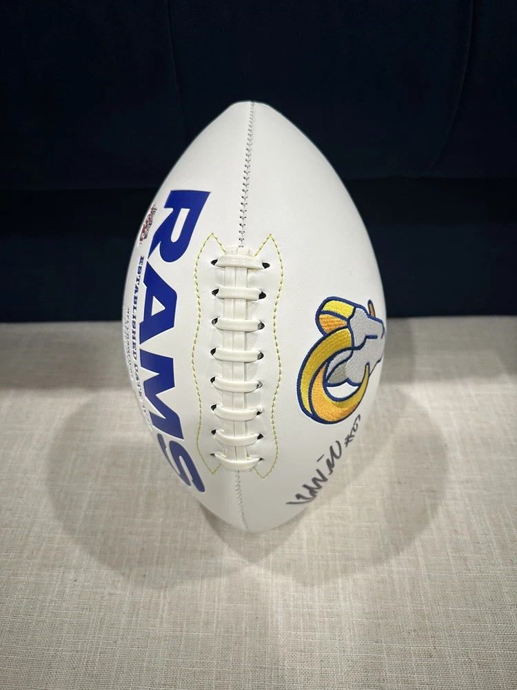 Elevate your collection with this Fanatics Authentic Kyren Williams Autographed Los Angeles Rams White Panel Football. A must-have for any football enthusiast, this ball is a testament to the skill and prowess of Kyren Williams on the field. The signature is verified by Fanatics Authentic, ensuring its authenticity and originality. This memorabilia is a perfect addition to your sports memorabilia collection, especially if you're a die-hard Los Angeles Rams fan. The ball is in excellent condition and ready to be displayed or used to relive some of the most exciting moments in football history. Don't miss out on this unique opportunity to own a piece of sports history!