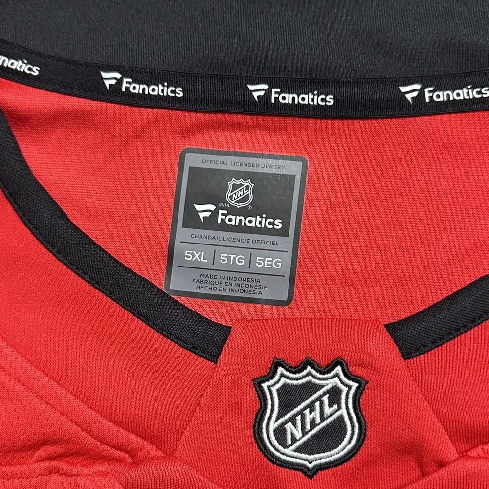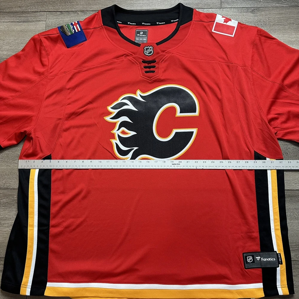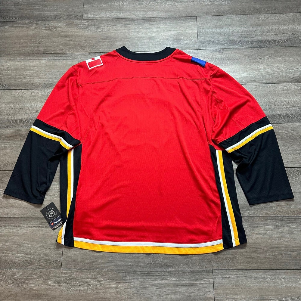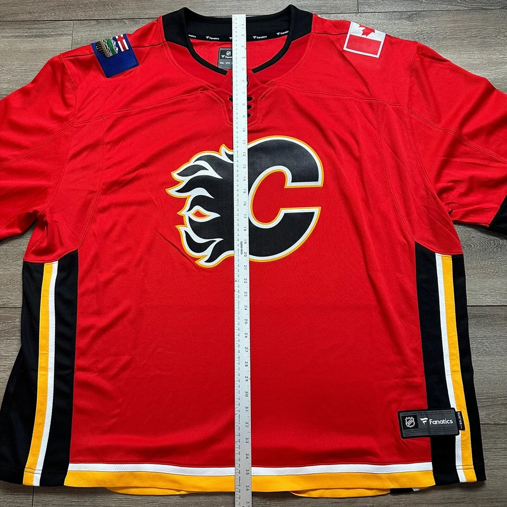 Team:Calgary FlamesCountry/Region of Manufacture:IndonesiaSize:5XLProduct:JerseySport:HockeyColor:RedPre & Post Season:Regular SeasonLeague:National Hockey League (NHL)Brand:FanaticsGender:MenOfficially Licensed:YesSKU:781
