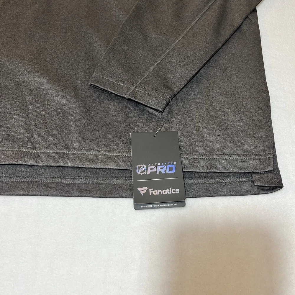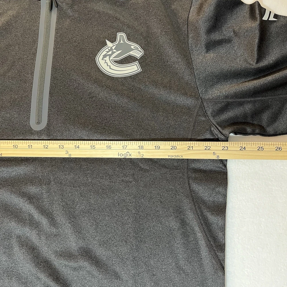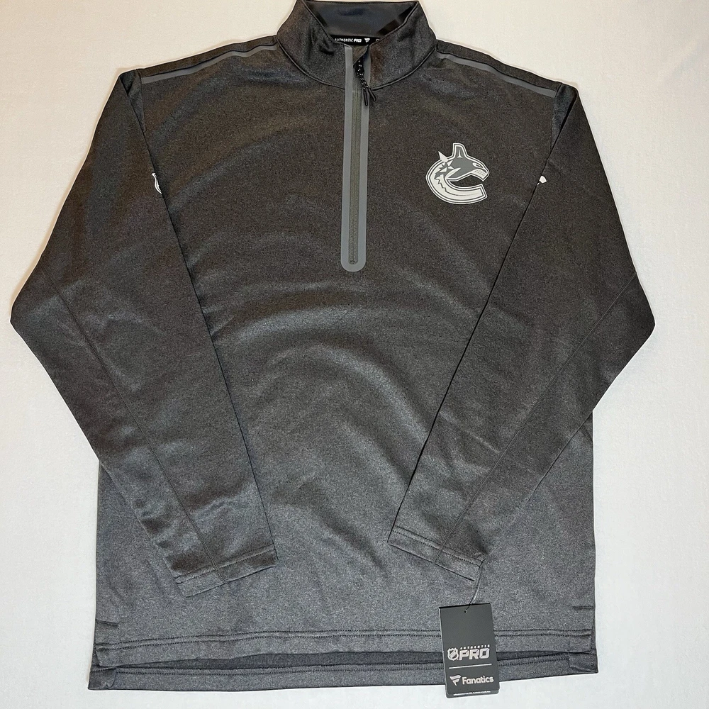 General Notes Color(s) may slightly differ due to monitor settings and lighting. Please check out our other listings as you may be surprised at what you find. Please read the item description and view all the photos. The photos will provide a good representation of the item (see the first note above about colors). Any flaw(s) will have a dedicated photos to show the flaw(s) You may want to compare the measurements of this item to something you already have that fits. If you experience a problem with your item, please contact us so that we can attempt to fix the issue promptly. NHL Vancouver Canucks Gray 1/4 Zip Pullover Men’s Large NWT Company: Fanatics (Authentic Pro Series) Condition: New With Tags Color: Gray Style: Regular Fit Sleeves: Long Sleeve Collar: 1/4 Zip with Stand Collar Material: Polyester blend Size: L (Large) Sleeve Length: 34.5” (from nape of neck in line with spine) Shirt Length: 28” (from base of collar to bottom of shirt) Shirt Width: 23” (from pit to pit) Wash Instructions: Machine Wash Signature Canucks team logo on left chest (heat sealed) Zipper surround (heat sealed) NHL Shield on right upper sleeve See photos for measurements and shirt details and appearance Measurements are approximate (see photos) Item Description from the Seller Add this 1/4 zip pullover to your NHL collection and show your support for the Vancouver Canucks in style. This piece is from the Authentic Pro line series by Fanatics and features heat sealed graphics and accents. It is New With Tags, so Buy It Now, while you still can and save from retail prices. Inv. #0389