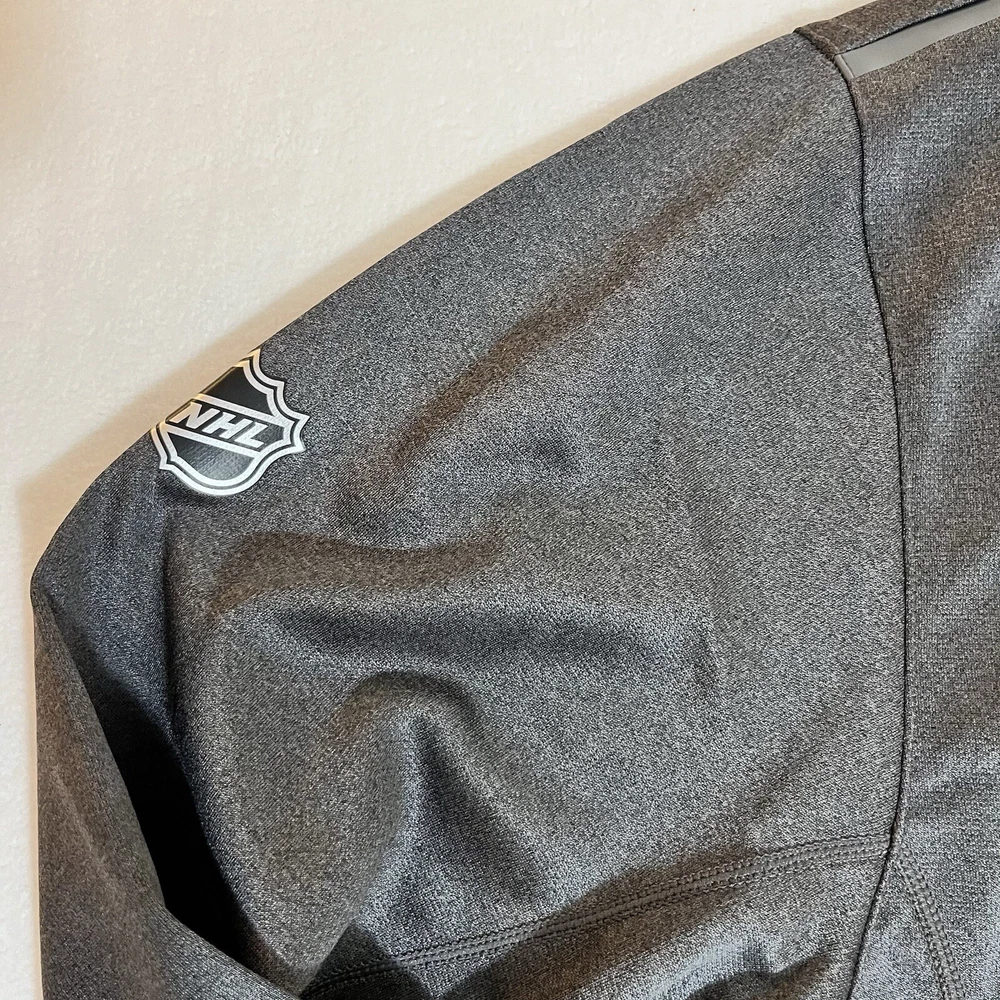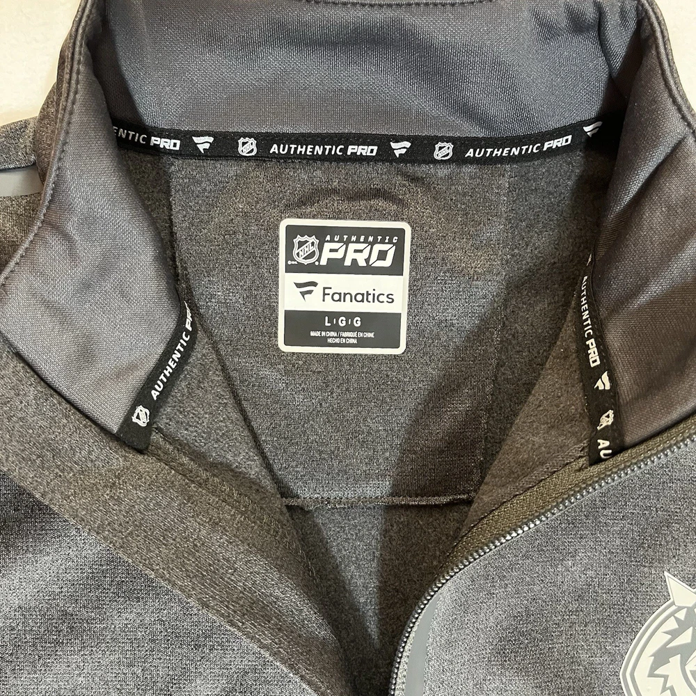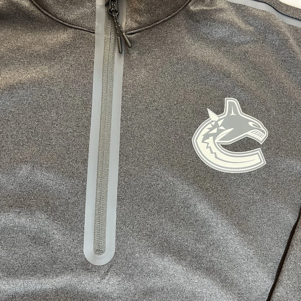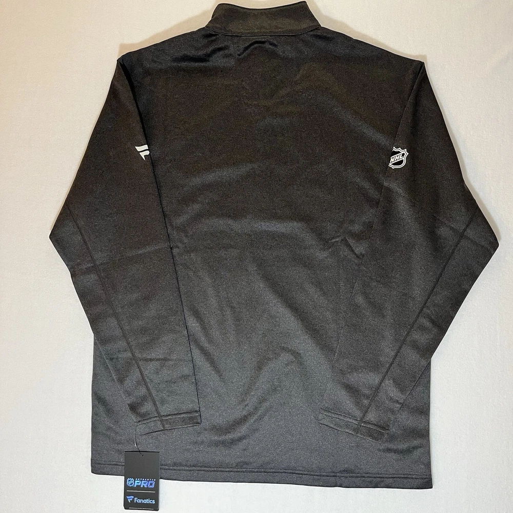 General Notes Color(s) may slightly differ due to monitor settings and lighting. Please check out our other listings as you may be surprised at what you find. Please read the item description and view all the photos. The photos will provide a good representation of the item (see the first note above about colors). Any flaw(s) will have a dedicated photos to show the flaw(s) You may want to compare the measurements of this item to something you already have that fits. If you experience a problem with your item, please contact us so that we can attempt to fix the issue promptly. NHL Vancouver Canucks Gray 1/4 Zip Pullover Men’s Large NWT Company: Fanatics (Authentic Pro Series) Condition: New With Tags Color: Gray Style: Regular Fit Sleeves: Long Sleeve Collar: 1/4 Zip with Stand Collar Material: Polyester blend Size: L (Large) Sleeve Length: 34.5” (from nape of neck in line with spine) Shirt Length: 28” (from base of collar to bottom of shirt) Shirt Width: 23” (from pit to pit) Wash Instructions: Machine Wash Signature Canucks team logo on left chest (heat sealed) Zipper surround (heat sealed) NHL Shield on right upper sleeve See photos for measurements and shirt details and appearance Measurements are approximate (see photos) Item Description from the Seller Add this 1/4 zip pullover to your NHL collection and show your support for the Vancouver Canucks in style. This piece is from the Authentic Pro line series by Fanatics and features heat sealed graphics and accents. It is New With Tags, so Buy It Now, while you still can and save from retail prices. Inv. #0389